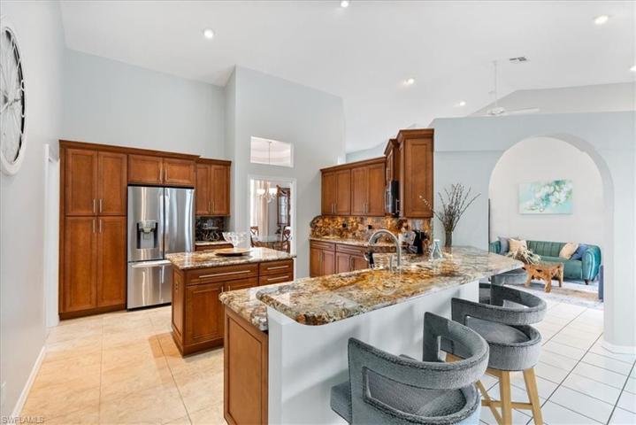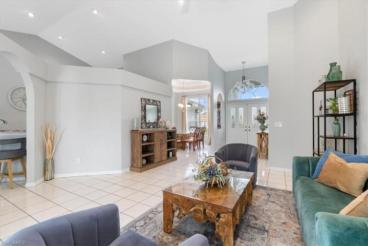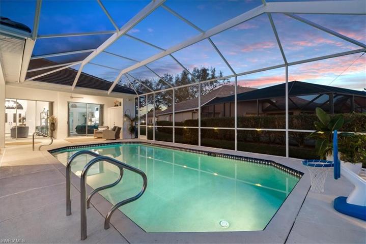This incredible Naples Gem is sure to please. Featuring four spacious bedrooms and three full bathrooms including a bathroom access to the pool. Beautiful Vaulted Ceilings and a split floor plan make it feel open and spacious. Gorgeous backyard, cul-de-sac street and located approximately five miles from Naples famous Fifth Ave South (downtown), Marina, and beaches. Recent updates include: ROOF, WATER HEATER, GARAGE DOOR, Smart Thermostat, interior and exteriors hardware for all doors, and new landscaping. ALL THREE BATHROOMS have been updated with brand new modern cabinetry, countertops, faucets, and mirrors. The Fourth Bedroom has access to a bathroom with a well-placed pocket door making it a perfect In-Law or additional master suite, private from the living areas. Three Large sliding glass doors open to the beautiful pool and outdoor kitchen area which is perfect for entertaining. Enjoy the sunset by the pool with the southwestern exposure. Berkshire Lakes has 5 lakes with walking/biking paths, a fishing pier, club house with heated pool and tennis/pickleball courts. Berkshire Commons is only minutes away for all your shopping needs. Also, EXTREMELY LOW HOA FEES! It is truly a one of a kind home and community!