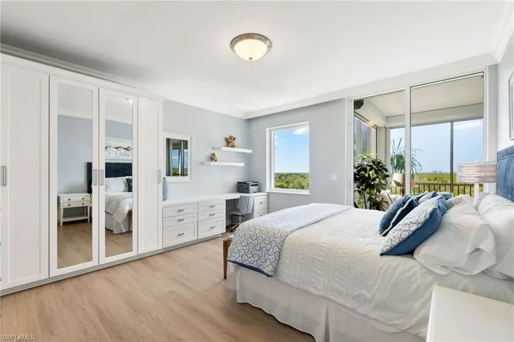Enjoy stunning sunsets from the expansive lanai overlooking the lake and West Bay Club’s signature 9th hole, as well as amazing sunrises from your 2 balconies on the East side of the building. This spacious great room floor plan with an open kitchen, 3 bedrooms and 3 full baths is perfect for entertaining family and friends. This tastefully upgraded condo features marble countertops, stainless steel appliances, Luxury LVP flooring, elegant light fixtures and fans, custom closets, crown molding throughout, impact glass, and the convenience of electric hurricane shutters. jasmine Bay offers an array of resort-style amenities, including a fully equipped private gym, club room, card room, movie theater, and a stunning infinity-edge pool with hot tub. Enjoy outdoor relaxation in private poolside cabanas or take advantage of the gas grills located on the pool deck. The towers also offer four spacious guest suites perfect for overflow guests. West Bay Club amenities include a new private Beach Club on the Gulf of Mexico with a restaurant/bar, plus chair and towel service. The newly renovated Bay House offers a resort-style pool, yoga studio, Pilates, stretching, spinning room, sauna, Aqua Cafe poolside restaurant for indoor or poolside dining, 8 clay tennis courts, and a Technogym state-of-the-art fitness center. West Bay’s River Park is on the Estero River and features a fishing pier, boat launch w/Gulf access, boat storage, kayaks/canoes, playground, basketball court, picnic areas, and a 1.5-mile walking trail. The Sports Park offers residents 6 pickleball courts, a fitness lawn, bocce courts, and 2 separate dog parks. Membership is also available to the private 18-hole Pete and PB Dye golf course and clubhouse.