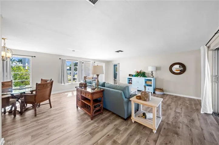 Boater’s paradise! Intersecting Canal Views! Enjoy Direct Sailboat Gulf Access just minutes to the river. Positioned to look straight down a wide intersecting canal and across the expansive 200+ foot Bayshore & Coral canals, this property delivers true million-dollar water views in one of Cape Coral’s most sought-after boating neighborhoods. Located on iconic Bayshore Drive, known for deep water access and multi-million dollar waterfront estates, this residence sits just a short bike ride from Cape Coral’s only beach and the revitalized Yacht Club district. Sailboat access places you nearly 2 minutes to the Caloosahatchee River and open water with no bridges and no locks, making this a true boater’s paradise. This beautifully remodeled two-bedroom, two-bathroom coastal cottage is offered fully furnished and move-in ready. The open floor plan is filled with natural light and designed to capture panoramic canal views from the main living areas. The stylish kitchen features modern appliances and ample storage, while the spacious primary suite offers abundant light and access to the screened lanai. The second bedroom is ideal for guests or a home office.