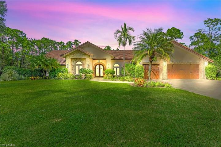 Presenting an exceptional opportunity to own 5.46 acres a fully fenced and electrically gated compound tucked within the quintessential neighborhood of Collier Woods. It is ideally situated within the preferred “X” flood zone. The main house features gorgeous curb appeal, a circular driveway, wood cabinetry, solid wood core doors, a full-house reverse osmosis water system, 1000 gallon propane tank, a whole-house generator, a separate generator for a propane tank for the well pump, a custom pool/spa, and a mature landscape with fruit trees, landscape lighting and an automatic sprinkler system and more! The 3700 sf main home features 5 bedrooms + Den, 3 1/2 baths, and an air-conditioned 3-car garage. This idyllic location will give you the privacy of country living while just minutes away from shopping, dining, and Naples’s pristine beaches. Agents, please read the remarks.