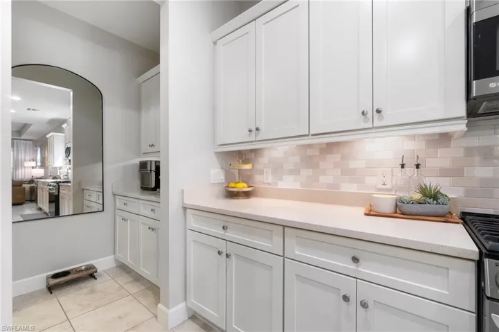 This beautifully upgraded home in Camden Lakes showcases a myriad of modern amenities and special touches, ensuring both functionality and elegance throughout its spaces. In the heart of the home, the kitchen is a chef’s dream, featuring new LG appliances, upgraded cabinets adorned with moldings and equipped with pull-out shelves for maximum convenience, upgraded kitchen faucet and desireable quartz counters. The walk-in pantry is thoughtfully designed with built-ins, including pull-out baskets and an additional butlers pantry gives extra storage and overflow space.