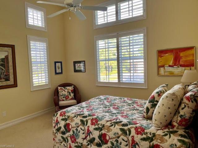 H14084 Elegant Bermuda inspired architecture by award winning architect Dan Summers, AIA, in Ibis Cove, a premier neighborhood within Bonita Bay with a private yet extraordinary lake view. Enjoy fabulous color over the water from magnificent western sunsets. Four bedrooms, all ensuite, including flexible fourth as an office/study area. Clive Christian custom kitchen cabinetry, imported from England, with granite countertops. Crème nova marble floors, imported from Italy. All high-end appliances, Cathedral, warm wooden ceiling in kitchen. Octagonal morning room with wraparound windows and a two-story high ceiling. Gracious Guest House with private lake views, separate from main house, featuring a full living room with cathedral wood ceiling, bedroom and full bath and private entry. Living & dining area with long private views over pool & lake. Spacious master bedroom with wall of windows providing views of pool & lake. Large lanai with 16 by 36 ft. pool. Porte de cochere & motor court, with large 2 car garage entrance not visible from street. French doors at front & lanai entrances. Plantation shutters & crown molding throughout. New roof 2022. Full “Storm Smart” hurricane protection.