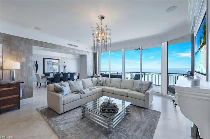 This Lavish Condo boasts three ensuite bedrooms and a half bath near the family room. Each Guest Bedroom has a balcony with Sweeping Views of Marco Island and the 10,000 islands. The Master Suite includes a sitting area and Views of the Gulf with access to the main lanai. The large Marble Shower, dual vanities, jetted tub, and separate water closet with Bidet complete the Master Bathroom. You’ll marvel at the Nightly Sunsets and Views that include the Gulf and extend all the way up Marco Island’s Beach.