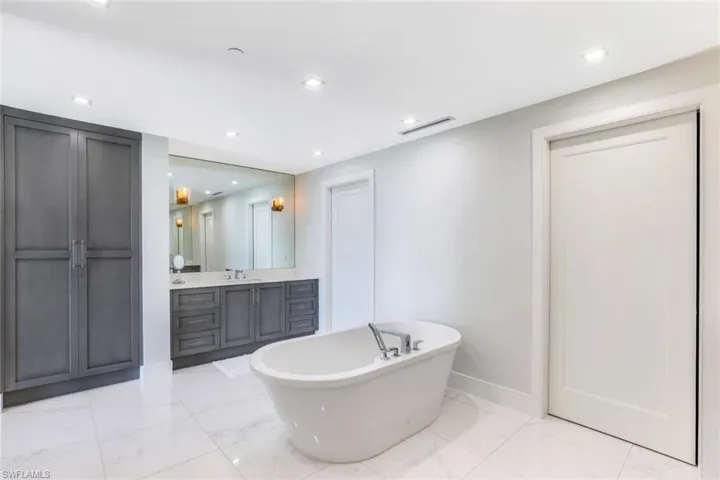 Kalea Bay is the definition luxury living. Located in North Naples, this private community has over 88,0000 square feet of amenities. The amenity center has three pools, a resort styled pool, an adult pool, and a child pool. The amenity center also has several fire pits, outside bar, tennis and pickle ball courts, two restaurants, shops, guest cottages and a State-of-the-Art Fitness Center. The condo itself has stunning Bay, Marina, and Gulf views. Walk off of your private elevator that leads directly into the massive living room. The designer kitchen flows perfectly into the living the room and outdoor area, making it ideal for hosting parties. The high ceilings combined with floor to ceiling windows allows for beautiful views from anywhere in the condo. Want a different view, take the private elevator to the rooftop pool, common area, and fitness room to get a stunning view of all of North Naples. Kalea Bay also offers a shuttle from the clubhouse to the beach for easy access. Kalea Bay has all the amenities of a 5-Star Resort.