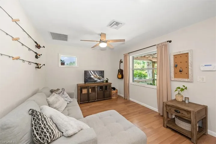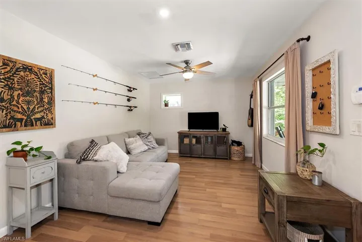 Darling home has been thoughtfully updated by the current owner and allows you a bit of country living yet close to the Pine Island corridor with an abundance of shopping, restaurants and medical facilities. The home features a gated front entrance, circular drive, welcoming front porch, great room floor plan with 1 bed and bath, oversized 12′ x 20′ shed, firepit, paved area and gravel area for boat/RV storage and firepit. Recent updates include Central HVAC and ductwork installed in 2020 (the prior window boxes now have impact glass and allow additional light to filter in); New metal roof added 2020; Impact rated front door; Full home water softener system; Kitchen renovation including new white shaker cabinetry, countertops, dishwasher, sink, disposal, and fridge; Whole home generator hook up; Full Home ADT security system; and new gravel. NO WATER on property or in home during any storm, including Hurricanes Ian, Milton, or Helene. The seller pays for flood insurance abt $600 per year and the policy is transferable. The yard is completely fenced for privacy and includes locquat, lemon and mulberry fruit trees. Would make a great residence, 2nd home or investment property.