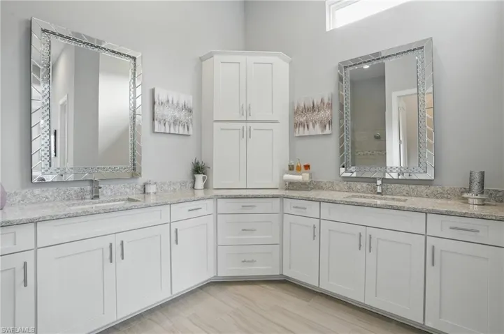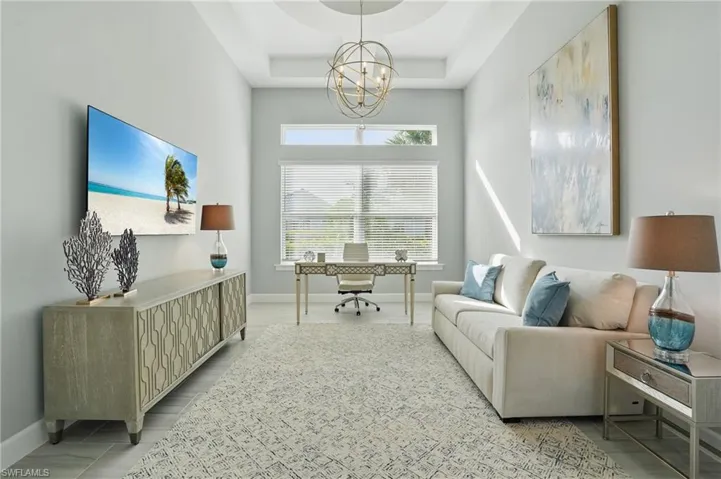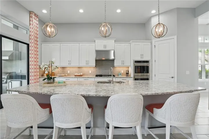 Welcome to the beautiful community of Oyster Harbor, located within the award-winning development of Fiddler’s Creek! The home is beautifully appointed with high-end furnishings curated from Baer’s Furniture and Robb & Stucky Interiors. Even the designer chandeliers have been thoughtfully chosen to enhance the elegance of each space, adding a warm and sophisticated ambiance throughout the home. The spacious open-concept floor plan features three large bedrooms plus a den, 3.5 baths, and striking design elements, including 16-foot coffered ceilings and crown molding. The gourmet kitchen boasts white shaker-style cabinetry, neutral granite countertops, a large center island, stainless steel appliances, a gas range with stainless steel hood, double oven, mounted microwave, and a walk-in pantry. Adjacent to the kitchen and living room is a beautiful dining area complete with a wet bar featuring upper and lower cabinetry, under-cabinet lighting, and a temperature-controlled wine cooler — perfect for entertaining. On the opposite side, the living space opens to a large covered lanai and pool deck, showcasing an outdoor kitchen and dining area, a firepit with seating, and a heated pool and spa — ideal for entertaining, swimming, or simply soaking up the Florida sunshine. The expansive primary bedroom easily accommodates the king-size suite with additional seating and a stunning wall of windows that floods the room with natural light. It also offers two large walk-in closets and a luxurious en-suite bath featuring dual sinks, abundant storage, and a beautiful large walk-in shower. Each guest bedroom is generously sized with ample closet space and private en-suite baths. Additional highlights include a stunning lake view, a spacious two-car garage, electric and manual storm shutters and a water purification system — all combining to make this the perfect home. Residents of Fiddler’s Creek enjoy world-class amenities, including casual and fine dining, a fitness center, tennis, pickleball, bocce, a full-service spa, sauna, and a resort-style pool. Optional golf, beach, and marina memberships are also available.