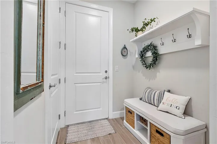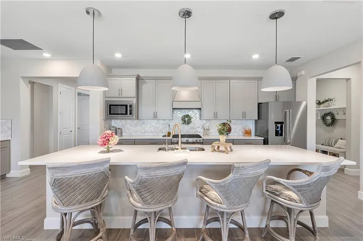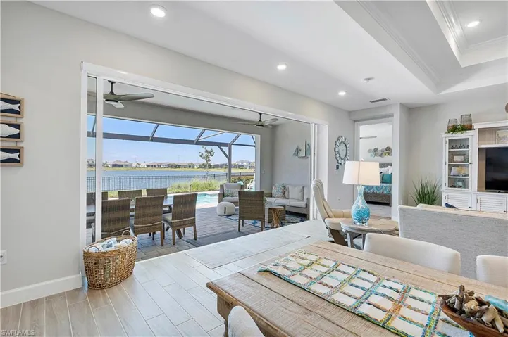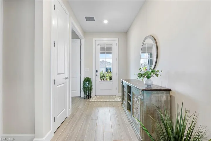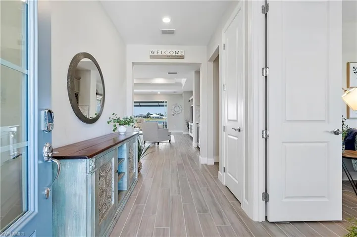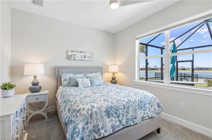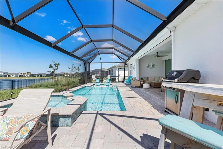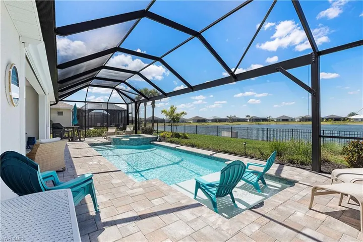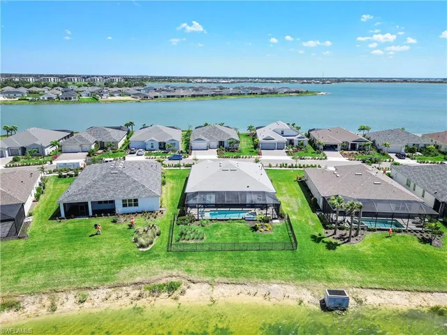 Welcome to Edgewater Shores, an exclusive gated enclave in the heart of Babcock Ranch. This beautifully upgraded Stardom model has 2,278 sq. ft. and offers 3 bedrooms + a den, 2.5 bathrooms, and an extended 3-car garage, epitomizing modern luxury and smart home convenience. Enjoy breathtaking waterfront views and spectacular sunsets from your fully fenced backyard oasis. Relax on the spacious extended lanai, soak in the gas-heated saltwater pool & spa, or lounge on the sun shelf. This outdoor space also features an extended pool cage, upgraded pavers, a sun deck, and an advanced drainage system to keep the area pristine. Storm Smart screen and electric shades offer shade and privacy, and the space is pre-plumbed & prepped for an outdoor kitchen. Inside, an open, airy floor plan showcases solid wood doors, ceramic plank tile flooring, and an entertainment bar for seamless hosting. The chef’s kitchen is a showstopper, boasting quartz countertops, an eye-catching backsplash, upgraded stainless steel gas appliances, and custom soft-close cabinetry. The spacious primary suite is a private retreat, featuring a spa-like ensuite with an oversized walk-in shower with tile to the ceiling and a double vanity with quartz counters. The den offers a versatile space — ideal for a home office, library, or guest overflow — and comes complete with a built-in Murphy bed bookcase. Two additional bedrooms and a guest bath with walk-in shower provide comfort for family and guests. Additional Premium Features include: Insulated garage door panels & ceiling for energy efficiency; Phantom screen door for fresh air flow; Water softener & reverse osmosis system for purified water; Landscape lighting & new landscaping last year; Extended garage attic access ladder for extra storage; Smart home features: Wi-Fi extensions, smart garage door, smart front door opener, camera doorbell, driveway & pool cameras. Desirable Edgewater Shores is a serene, private neighborhood where residents enjoy exclusive amenities, including a heated resort-style pool, covered cabana area, a fire pit lounge, and barbecue grills. For outdoor enthusiasts, the community kayak launch on Lake Babcock provides easy access to paddle and soak in the natural beauty of the area. With picturesque lake views, well-maintained green spaces, and peaceful surroundings, Edgewater Shores offers a perfect balance of luxury and nature, and is just a short distance away from Founder’s Square, where food trucks, live music, and farmer’s markets bring the community together. Schedule your private showing today, and get ready to enjoy lakefront living in America’s first solar powered town.