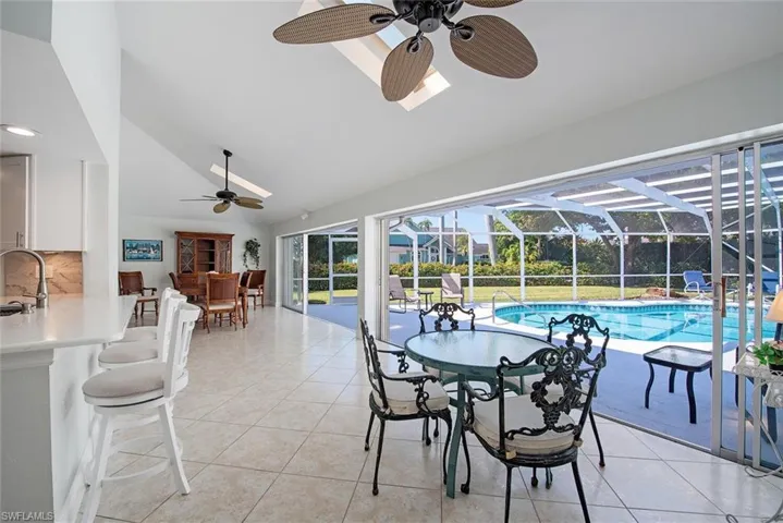 Nestled within the sought-after boating community of Royal Harbor, this three-bedroom, two-bathroom home boasts a two-car garage and sits on an oversized pie-shaped lot, providing ample greenery. Positioned at the end of a canal with direct waterfront access, this property is a boater’s dream with a dock/boat slip and lift that leads to bridge free access of Naples Bay and the Gulf of Mexico. An oversized pool and screened lanai provides enjoyment of the true Florida lifestyle. Inside, the home features tile flooring and a light, airy decor. Conveniently located just minutes away from Naples 5th Ave. South’s and 3rd St. South’s, upscale dining, shopping, entertainment, and pristine white sand beaches.