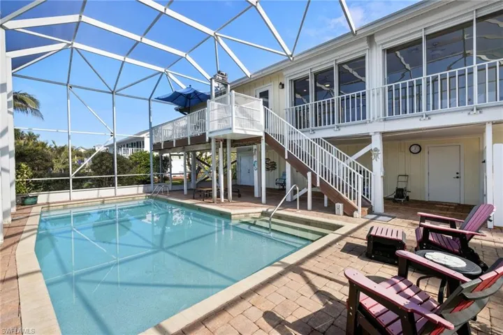 This exceptional home in The Dunes Golf & Tennis Club combines convenience and peace of mind. Its prime location offers quick access on and off the island while providing stunning 180-degree lake views. Designed with durability and safety in mind, the home has remained untouched by recent hurricanes. The exterior features a new standing seam metal roof, fresh Hardie Board siding, electric storm shutters on sliding glass doors and weatherproof decking and stairs, ensuring longevity and low maintenance. The pool area is equally remarkable, with no damage from recent storms, new heavy-duty screen enclosure and a new pool pump. Inside, the kitchen and baths have been recently remodeled. The great room offers two sets of built-in cabinets and an open setting for entertaining. The glass-enclosed lanai offers more interior space with distant lake views. In addition to resilience, convenience is another hallmark of this property, featuring a 1,000-pound exterior lift with access to the main level. An outdoor shower, fenced backyard and large deck create the ideal setting for relaxation. “Father Time” calls the current owners to leave the island haven, offering a great opportunity!