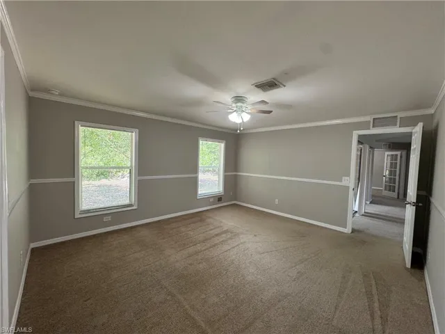 Spacious home located in an area of Lehigh Acres with lots of privacy! This home offers an open floor plan with extra linen closets in the hallway, laundry room, master bath, a den and a large pantry in the kitchen for additional storage. The kitchen is great for entertaining and offers a breakfast bar for meals, large pantry, and an attached laundry room with access to the garage. The split floor plan boasts a large master suite, with a walk-in closet, ceiling fan, attached master bath with a separate shower and tub, and twin sinks. Two large guest bedrooms are located off the living area which is divided by a hallway and guest bathroom. A large den/study area is included in this unit with double doors to access the space. A screened in patio is located off of the living area and the front porch has a custom wood seating area to enjoy the great Florida weather. This property won’t last long!