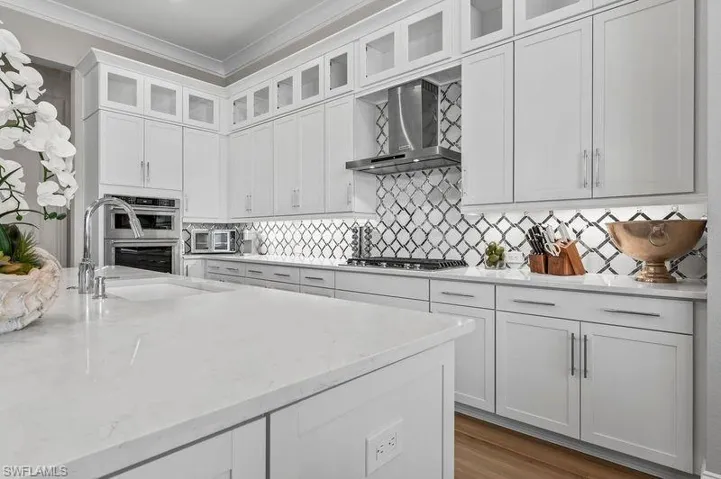 This stunning POOL and SPA home with breathtaking PRESERVE views is truly a showplace and will impress even the pickiest buyers. Perfect for those who like privacy. This preserve is extremely unique, you’ve never seen anything like this, it’s like being on safari. Must see this to truly appreciate it’s beauty. Highly coveted Southwest exposure for breathtaking sunsets. Professionally decorated ENTERTAINER’S DREAM home with an open concept floor plan, tons of natural light, chef’s dream kitchen & LUXURY OUTDOOR LIVING. Soaring ceilings and enormous light filled glass sliding doors for that airy feel. Large living room with custom built-in shelves and cabinets, fireplace, coffered ceiling, dining area with built-in bar and zero corner glass sliders. Stunning chandeliers throughout. Majestic office/den with custom built-in shelves and cabinets. Your divine and private master suite includes his and hers walk-in closets with custom built-ins, a walk-in shower, gorgeous tub and dual sinks. Master bedroom is located on the side of the home and walks out to the lanai, perfect for your morning coffee. Each guest bedroom has its private bathroom for your guest’s comfort. Gourmet chef’s kitchen with lots of cabinets, huge island, breakfast bar, walk-in pantry, gorgeous backsplash and gas stove. The amount of covered and uncovered outdoor space is unreal, allowing you to enjoy being outside all year round. Outdoor area will impress you with large outdoor kitchen. Saltwater pool and spa with waterfalls overlooking vast preserve. This majestic home with UPGRADES GALORE was decorated by professional designer with no expenses spared. Furniture and decorations are negotiable. Low HOA dues with luxury amenities, pickleball, tennis, resort style pools and fitness. Just minutes to Old Naples, famous 5th Ave, world class beaches and Hamilton Harbor Yacht Club.