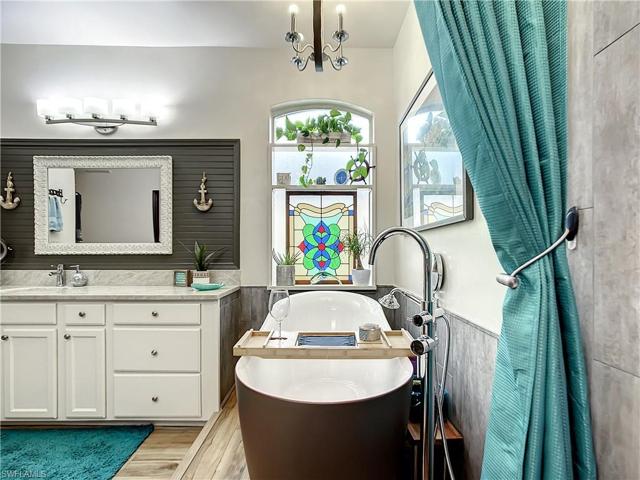 NEW PICTURES. Welcome to your slice of paradise! Enjoy the tranquility of this 3-bed, 2-bath home of luxury living with a screened-in lanai and a saltwater pool (2021), outdoor kitchen island. This tastefully remodeled home offers a double door entry, luxury vinyl floor (2022) throughout the house, a large kitchen with a custom island, granite countertop, stainless steel appliances (2021) with extended warranty until end of 2025, a luxuries master bath, walk in closets, an updated guest bath with a quartz countertop, new washer and dryer, new exterior paint (2023), tinted sliding doors in the living room, crown molding, tray ceiling and a lot more features. New tile roof (February 2024) The interior was painted with bright, light colors (February 2024)