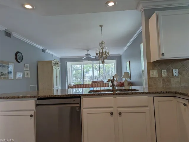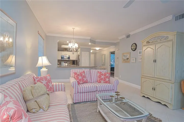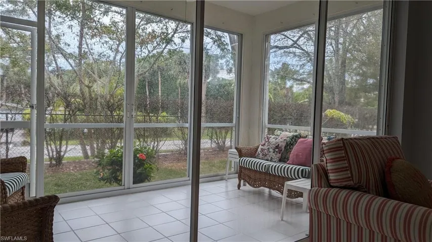 SELLER FINANCING AVAILABLE!! Gorgeous 1st floor home with 3 bed / 2 bath 1 car attached garage just west of US 41. This end unit has been beautifully cared for and it shows. This property is not just another pretty property….It has been brought to a standard few homes enjoy. Upon entering the home you get the feeling of peace and tranquility. The furnishings are an extra bonus but the additions in 2023 are spectacular! Upgrades include newer impact glass windows, new LVP neutral flooring in the master, kitchen & bedrooms, new interior paint, new appliances / washer & dryer, crown molding, new vanity sink & toilet in master, new custom tile in the master shower, new storm door & car garage door, kitchen cabinets custom painted and a newer murphy bed in den. The patio has a glass lanai for extra comfort for year round living. Additionally, all and expensive property maintenance are complete: Water heater 2020, A/C 2017, NEW plumbing 2021. Come see this pristine property within a short ride to several parks, Vanderbilt Beach, shopping, dining and entertainment located just outside of the community. Amenities include pools, clubhouse, tennis & pickleball. SELLER FINANCING AVAILABLE
