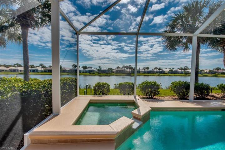 The one you’ve been dreaming of is here! Nestled in Sandoval, this waterfront abode with pristine pool is in impeccable condition. Pack your swimsuit & flip flops to embrace the laid-back Florida lifestyle! Step into a modern greatroom floorplan that bathes in natural light. The kitchen boasts raised panel wood cabinets, granite counters, breakfast bar, pantry & poolside nook. Spacious master suite with large windows & plantation shutters provide a stunning view of the serene lake. Indulge in the luxury of the newly updated master bath with dual sinks, walk-in shower & organized walk-in closet. Extras: BRAND NEW TILE ROOF, NEW POOL CAGE (no-see-um screens & no crossbars), SOUTHERN exposure on your SPARKLING POOL & SPA (pool heater does not work and is not warranted), electric/accordion/manual hurricane shutters, 8’ sliders, updated flooring & so much more! This street enjoys longer driveways for ease of parking & sidewalks on both sides of the street. Sandoval amenities: fitness center, tennis, pickleball, volleyball, bocce, basketball, fishing, dog parks & more. All outside yard work is included, ensuring a seamless transition to the carefree Florida lifestyle. Dream location where the warmth of home meets the charm of Sandoval.