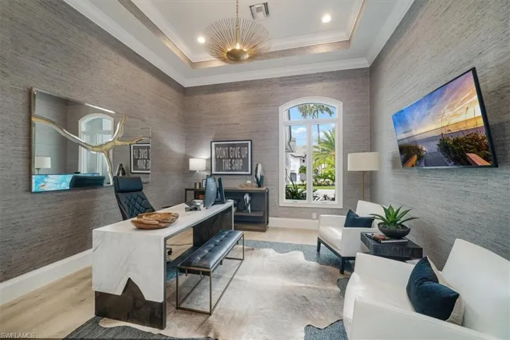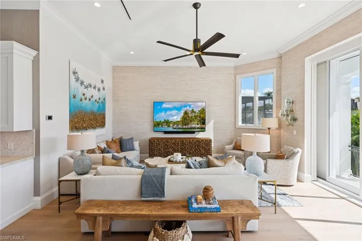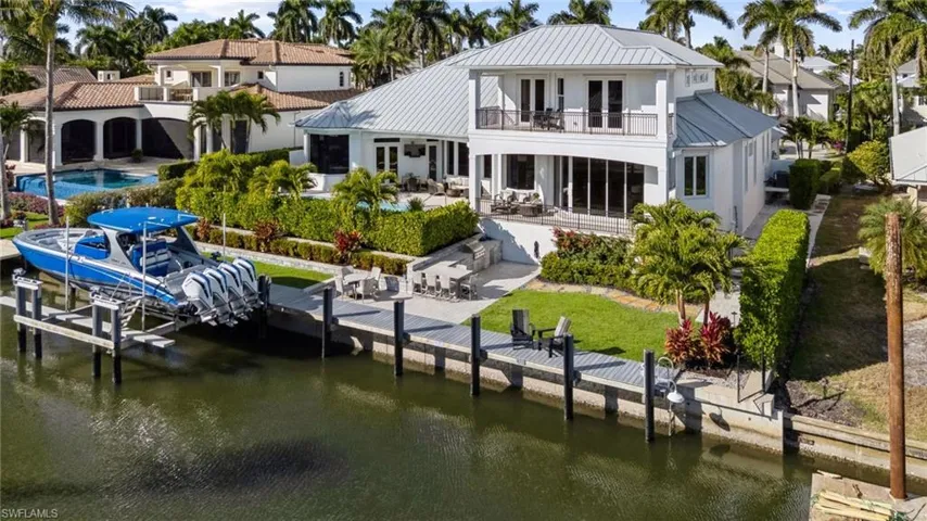 Home is high and dry and never had water – not even in the garage! Sold turnkey furnished – move in today and start enjoying all Aqualane Shores has to offer. Tucked along a direct Gulf-access canal in prestigious Aqualane Shores, this spectacular estate captures the essence of Naples waterfront living. Offering southern exposure, a new seawall and dock (2023), and a full interior transformation – this home combines timeless coastal design with modern innovation and effortless livability. Designed for those who value refined coastal living, the residence showcases seamless indoor-outdoor flow with a resort-style pool and spa, expansive tiered decking, and an upgraded outdoor kitchen overlooking tranquil water views. Inside, wide-plank oak flooring, soaring ceilings, and elegant millwork create a timeless yet modern aesthetic. The light-filled main level features a grand great room, gourmet chef’s kitchen, and a serene primary suite with direct lanai access, while an additional guest suite provides comfort and privacy. Further highlights include a whole-home generator, upgraded HVAC systems with dehumidifier and garage A/C, new pool equipment, 25,000 lb. boat lift, and all-new televisions throughout. Enhanced landscaping, a comprehensive alarm and camera system, and meticulous attention to detail, inside and out, ensure the home lives as effortlessly as it looks. Just a short walk from Naples’ world-class beaches and the fine dining and boutiques of Third Street South, this Aqualane Shores home exemplifies luxury waterfront living at its finest.