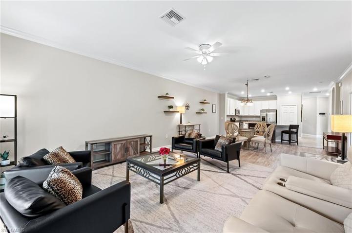 BEING SOLD “TURNKEY” So, just Pack your bags and move right into this immaculate home! Located in the very desirable community of Bent Creek which offers a wide variety of amenities including Pickleball, Tennis, Basketball, Bocce ball, a resort-style pool, and a fitness center. This BRIGHT and AIRY VILLA features 3 bedrooms, two full baths, a great room, a spacious kitchen, stainless steel appliances, a pantry, and a large island that is great for entertaining! This convenient North Naples location is within minutes of great shopping, dining, and the sandy beaches of Naples!
