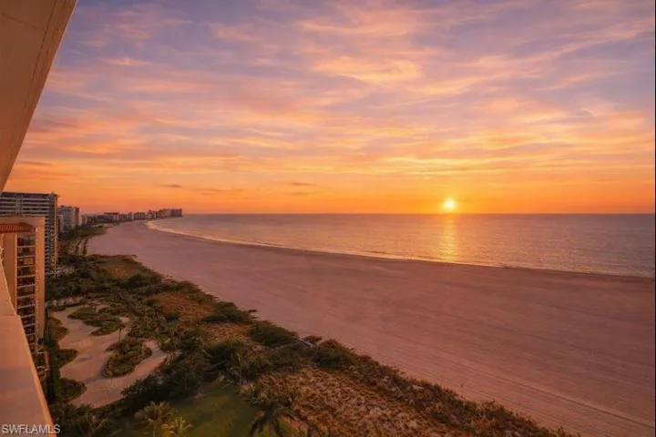 Experience sweeping, unobstructed, panoramic views from this rarely available penthouse perched above the pristine beachfront of Marco Island. Views stretching from Cape Marco all the way to Tigertail Beach, this elevated residence captures the full arc of the island’s coastline—along with year-round, picture-perfect sunsets.