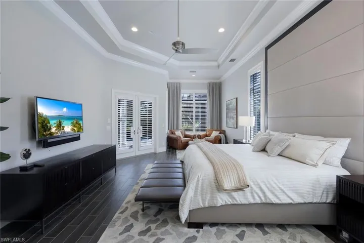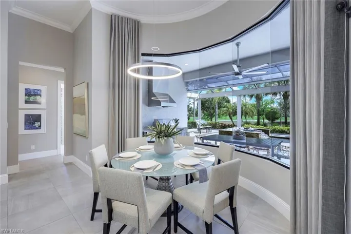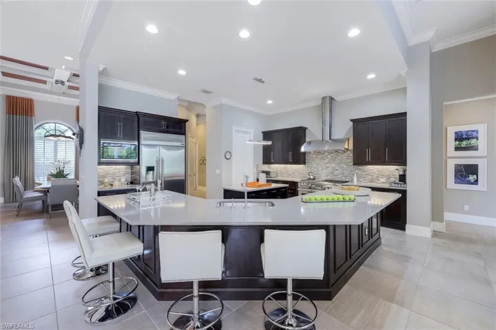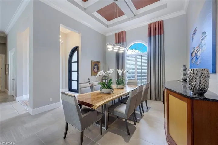 This spectacular home, built by STOCK, is the gem you’ve been waiting for. Privately located in the exclusive Isla Del Sol neighborhood in award-winning Fiddler’s Creek, this ultra sophisticated 4 bedroom, 4 and a half bath home is a must see! Modern and luxurious in design and style, you will be impressed by each upgrade and curated elements including one of a kind Italian tile on the expansive lanai, surrounding the stone edged custom pool with fire bowls, water features, spa, outdoor kitchen, and for convenience, electric storm screens. The lush landscaping frames the beautiful 12th fairway of the Rookery golf course, green and manicured to perfection. Formal and informal dining areas, spacious office, magnificent primary suite with custom closets and bonus seating area perfect for morning coffee and a great book. Guest wing offering 3 bedrooms and baths, providing privacy and superior spaces to unwind. High end appliances, advanced whole smart home technology plus whole home generator delivers security, efficiency, and peace of mind. In addition, a garage like no other: air conditioned, 3 car bay, electric lift for 9000lbs, perfect for a 4th car or extra storage, featuring a true art installation on the garage floor that emulates agate stone. Fiddler’s Creek is an elevated resort style community with 54,000 sq ft club and spa, 2 resort pools, 2 restaurants, state of the art fitness center, tennis, pickleball, bocce ball and a full calendar of events year round. Optional private beach and marina memberships available. Golfers have the rare ability to immediately become a member of the private Golf Club at Fiddler’s Creek currently undergoing a new turf renovation estimated to complete in December, plus a brand new gorgeous private golf clubhouse, estimated to complete this summer. Located minutes away from the white sands of Marco Island and fantastic 5th Ave in downtown Naples. Completely furnished, elegantly professionally decorated, this sublime home, in this location, will not last long, and can be yours.