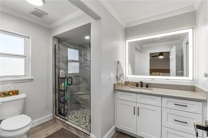 Beautifully remodeled coastal style pool home in a boating community. Scenic 25 min ride to Lover’s Key and the gulf! Community boat ramp/dock. This home has been completely remodeled within the last 3 years. This home is pristine and EVERYTHING HAS BEEN UPGRADED! Offering an open concept floor plan, this home has new plank tile flooring throughout, crown molding and tall baseboards throughout the home, modern LED ribbon lighting, a remote controlled electric fireplace with multiple color settings, all windows and doors are hurricane rated impact glass. Kitchen is light and bright with white wood Shaker cabinets, quartz counters, extra built-in cabinetry including a large coffee bar with quartz counters, new stainless-steel appliances. The baths have new vanities with quartz counters, mirrors with integrated LED lighting and showers with custom tilework. Heated pool with large deck space and an outdoor bar. Other upgrades in 2023 include: new roof, new insulation, new HVAC, new water heater, all new plumbing, all new wiring, new ceiling fans and light fixtures, new commodes, new WIFI garage door with camera allows you to open and close from anywhere. This home has been tastefully appointed and is a must see. Most furniture available separately. Enjoy a great neighborhood that offers a community boat ramp. Catch a snapper off the dock. Play a game of pickle ball, tennis or basketball. Playground. Low HOA fees of $240/ year. Boats and RVs are allowed here! Island Park Woodlands has community events like 4th of July golf cart parade, Harvest festival, Easter Egg hunt and more.
