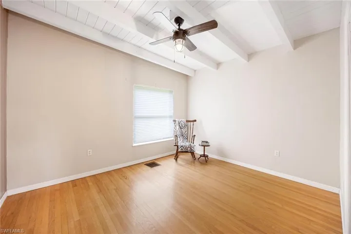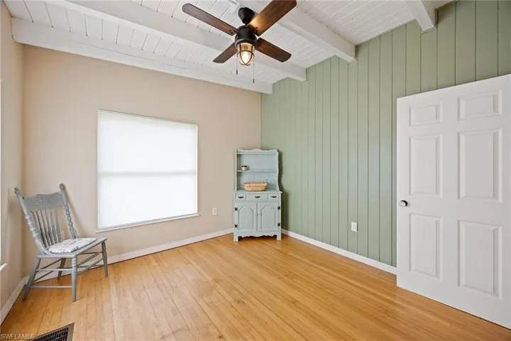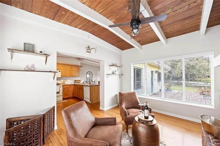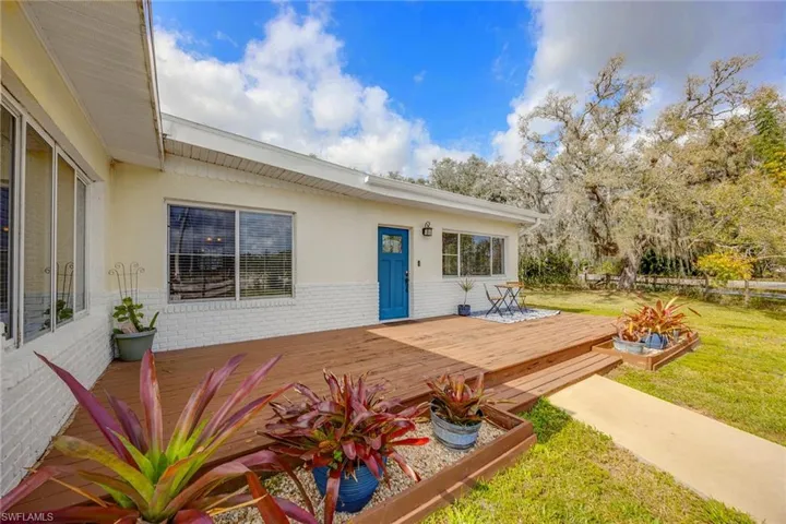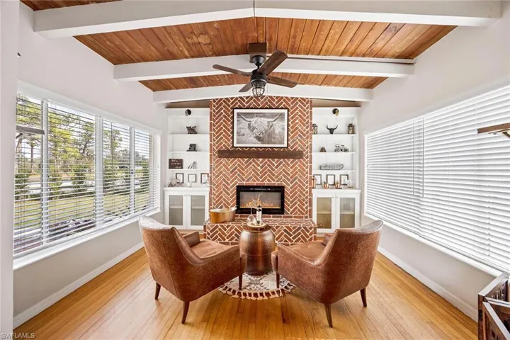 This stunning farmhouse is ideal for those who love the country lifestyle. Featuring three bedrooms, plus den, 2.5 baths, original hardwood floors, wood beams, wood ceilings and an indoor fireplace boasts a cozy and charming atmosphere. The spacious primary ensuite features a walk-in shower, dual sinks and a generously sized walk-in closet, providing ample space for relaxation and storage. Situated on a 2-acre completely fenced and gated parcel, this home is ideal for large dogs and horses. An added bonus, the roof was replaced in 2022. In addition, a new metal roof was installed on the open barn. This lovely home is located on North River Road in Alva, close to Babcock Ranch, Caloosahatchee Regional Park and the Caloosahatchee River with Telegraph Creek running behind the property.