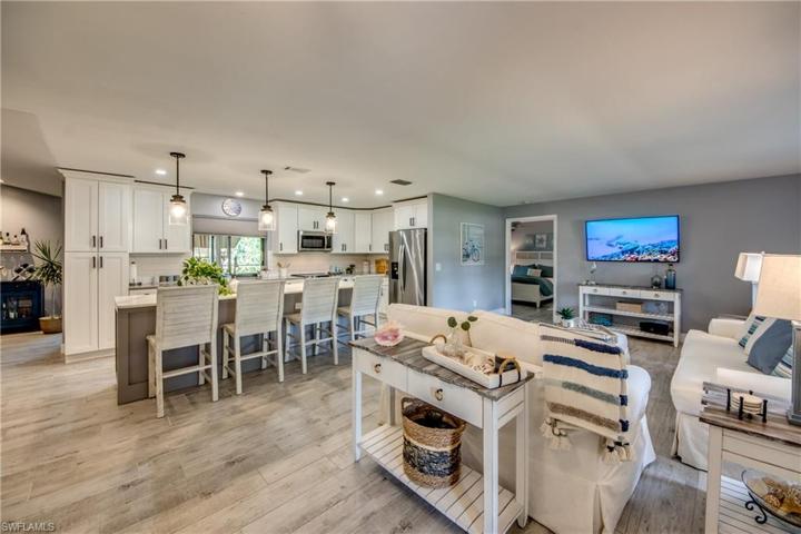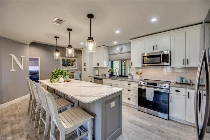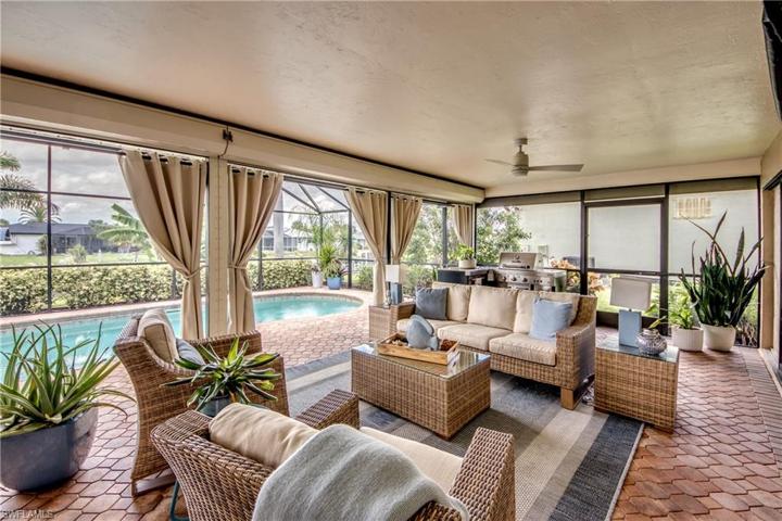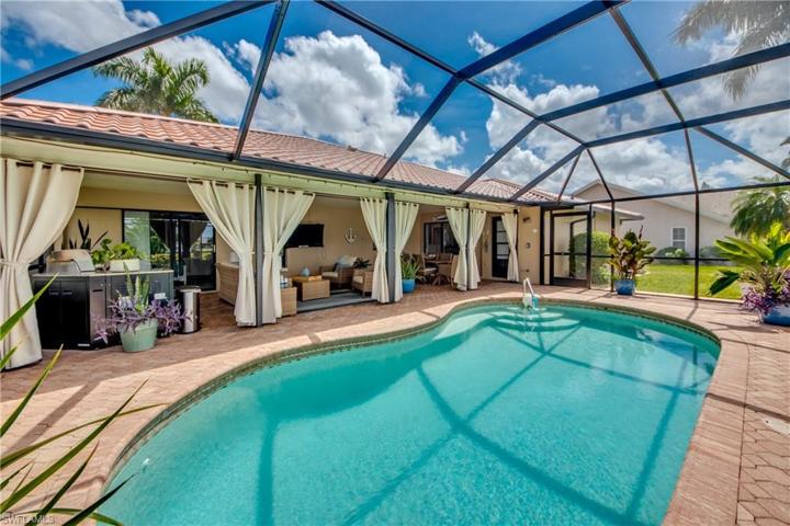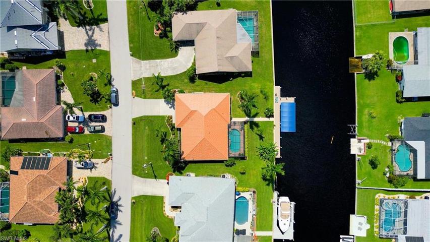 Step into this lovely renovated Floridian Ranch and be enveloped by the tranquility the coastal vibe emits throughout the Home. The redesign and remodel in late 2021/early 2022 offers exceptional selections — quartz countertops, white shaker cabinetry, subway tile backsplash, stainless appliances, updated bathrooms, recessed & pendant lighting, plank tile flooring throughout — and has brought this diamond glistening into the millennium. New systems in place as well — HVAC & Hot Water Tank August 2021, Garge Door October 2021, Pool Pump & Pool Heater November 2021, and the Deep Drawn Steel (metal) Roof September 2023. The Aluminum Screened Pool cage was replaced in May 2023. The yard is enhanced with rich well-manicured landscaping, tropical trees, exterior lighting, and a walkway from the lanai to the dock. Composite decking at captains walk and new canopy & cover over the 10,000lb lift has been added. You can drop your boat from this SE Cape location with a 0.5mile idle to the Caloosahatchee and on out to our water wonderland of fish estuaries, world-renowned beaches, and a multitude of waterfront restaurants. Overall Stunning! and Ready to make YOURS!
