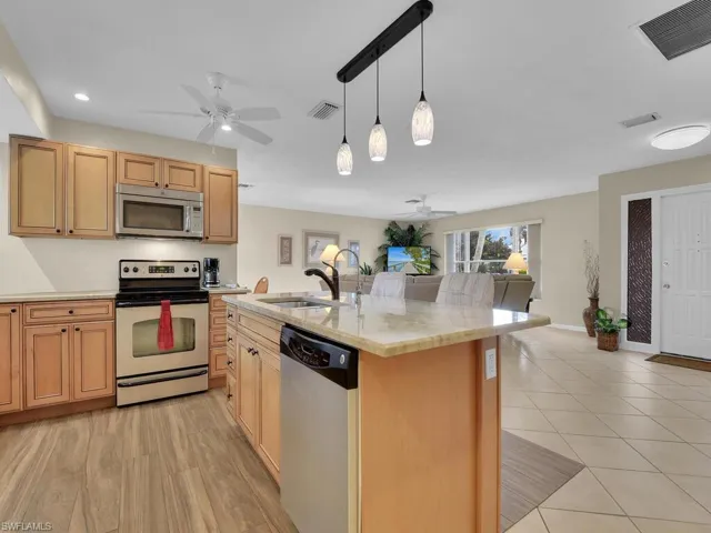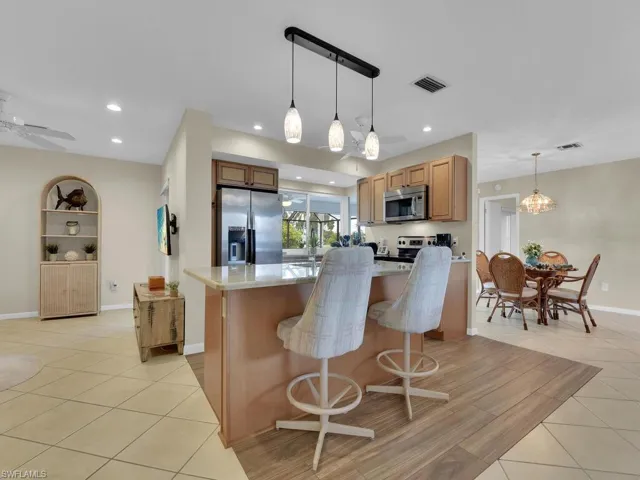 Welcome to 149 St Andrews Blvd in beautiful Naples, Florida! This spacious 3-bedroom, 2-bathroom pool home offers an abundance of natural light and an inviting open floor plan that seamlessly combines comfort and style. Step inside to discover spacious rooms that create a warm and welcoming atmosphere, perfect for both relaxation and entertaining. The well-appointed kitchen features a breakfast bar, reverse osmosis water filter faucet, stainless steel appliances, and plenty of counter space for cooking adventures. There are numerous slider doors where you can enter the pool area and enjoy breathtaking views of the surrounding Lely Hibiscus Golf Course. You can sip your morning coffee or host gatherings with friends and family in the outdoor entertainment area. Unwind in your own private oasis with a sparkling swimming pool perfect for soaking up the Florida sun or enjoying a tranquil evening under the stars. The attached garage provides convenience and piece of mind with a hurricane rated garage door and additional storage, ensuring your home remains clutter-free. NEW features that have been added since 2018 include WHOLE HOUSE GENERATOR (2023), IRRIGATION SYSTEM (2024), WASHER/DRYER (2022) HVAC SYSTEM (2021), SCREEN POOL ENCLOSURE (2019), LANAI ROOF (2019), SHINGLE ROOF (2018), SLIDING GLASS DOORS (2018), WATER HEATER (2018). The lanai boasts electric shutters and impact windows and the remainder of the home has manual and accordian shutters. Located in an established, safe, and friendly neighborhood and LOW $100 ANUUAL HOA FEE! This property is just a stones throw away from stunning beaches and essential healthcare facilities. The pet-friendly community makes it the perfect place for you and your furry friends to enjoy a vibrant lifestyle. Dont miss the opportunity to make this beautiful home your own—schedule a showing today and experience the best of Naples living!
