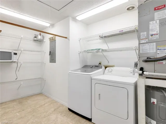 One or more photo(s) has been virtually staged, AI generated or rendered. This beautifully maintained 2 bedroom, 2 bathroom second floor end unit offers peaceful lake and clubhouse views in one of Naples’ most convenient locations. This light and bright residence features tile flooring throughout, creating a clean and cohesive feel, along with newer appliances that make everyday living easy and efficient. The thoughtfully designed layout includes an eating area within the kitchen as well as an additional dining space within the main living area, providing flexibility for both casual meals and entertaining. The primary bedroom offers a spacious retreat with a large walk in closet, while the primary bathroom features a walk in shower for added comfort and convenience. Enjoy the Florida lifestyle from your screened in lanai overlooking the lake and clubhouse, the perfect setting for morning coffee or evening relaxation. Major updates have already been taken care of, including a roof replacement in 2018 and HVAC system installed in 2019, providing peace of mind for years to come. As an end unit, the home benefits from additional natural light and added privacy. One of the standout features is the deeded vehicle storage space located within a gated area, perfect for securely storing a boat or small camper, a rare and valuable convenience in Naples communities. Woodmere Lake Club offers a relaxed setting centered around its scenic lake and community clubhouse, ideal for enjoying the Southwest Florida lifestyle. Residents appreciate the well maintained grounds and the close proximity to everything the area has to offer. Located just minutes from Downtown Naples, you’ll have quick access to world class dining, shopping, beaches, and entertainment