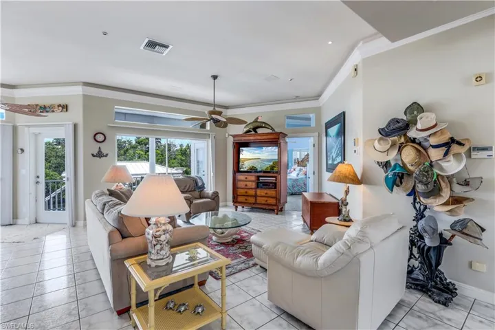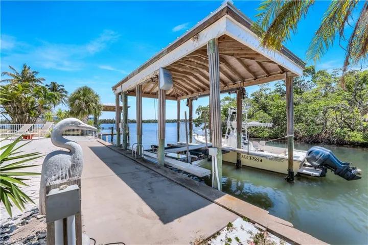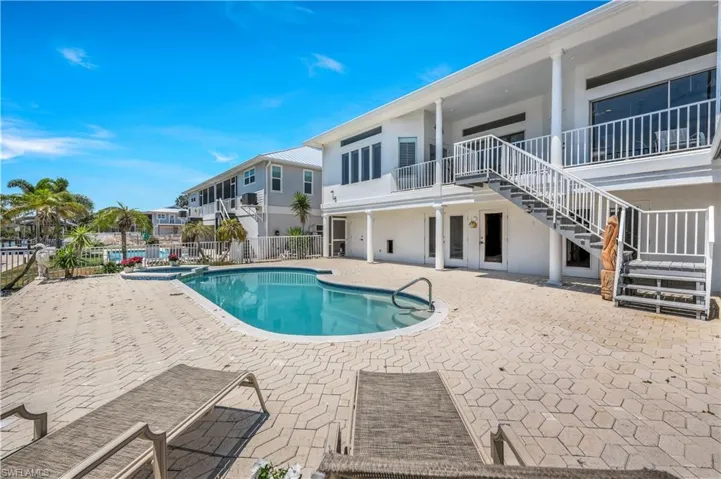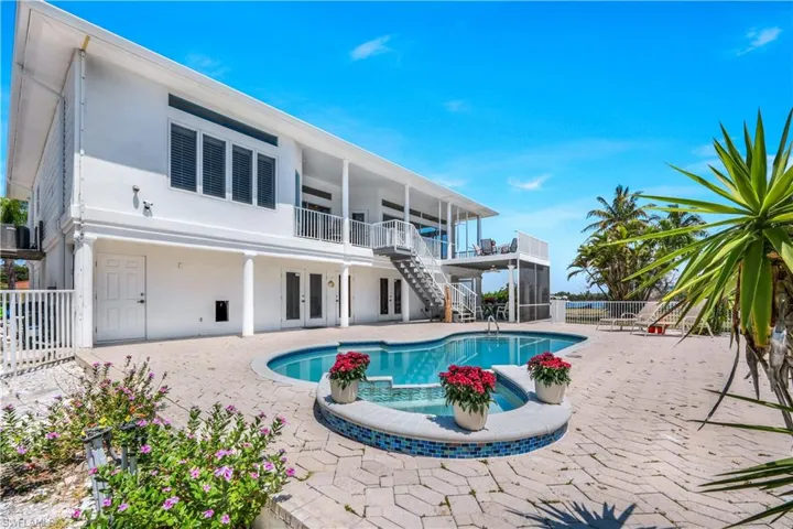 Wake up to breathtaking views of the SUNRISE every morning from almost every room in this home! This Florida style home offers wonderful 2nd floor views over the Bay and Canal. NEW ROOF 2024! With 3 bedrooms and 2 full baths, this home is ready for you to move in and enjoy the SUNSHINE LIFE! This home was built for entertaining! The open concept is perfect for intimate gatherings and large groups. Natural light spills in from every direction with transom windows. Too many features throughout this home to list. New Plantation shutters, transom windows throughout,tray ceilings, crown molding. The CHEF’S kitchen offers granite countertops, huge island with sink, backsplash, and plenty of cabinet space. Your private heated pool and hot tub spa are a delight and of course the views from your deck will just enhance your SW Florida lifestyle. The master wing has sweeping panoramic Bay views. Ensuite bath offers dual vanities, a dressing area and a walk-in shower. Huge walk in closet. Nicely sized second bedroom has access to the front balcony through the double glass french doors. The 3rd bedroom has access to the front balcony to enjoy views of the Bay and has a full ensuite bath. On the first level you will find the 2 car garage and an abundance of storage space for all of your tools and toys! Short distance to the public beach access point #25, right across Estero Blvd. Best of all, Jimmy Buffett’s Famous Margaritaville, Times Square, and fabulous dining are close by ( 1 mile) from this amazing home! (The boathouse has a lift that needs repair.)