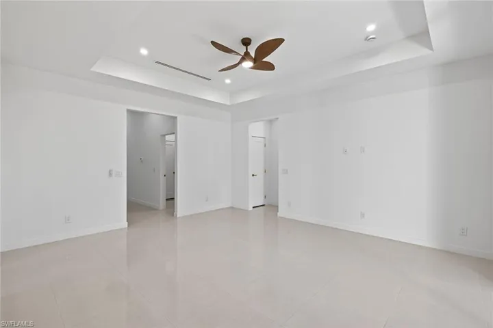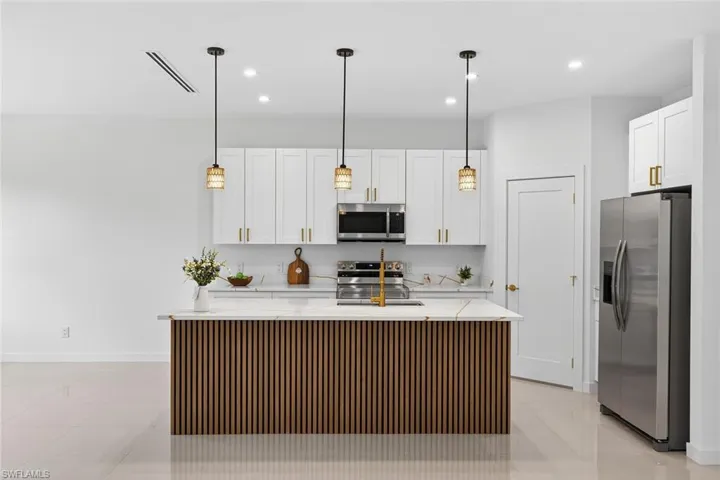 From the moment you enter, you’re welcomed by soaring 10’4” tray ceilings that create an airy, grand ambiance throughout the main living spaces. The home showcases sleek glass tile flooring throughout, offering both sophistication and easy maintenance. Every detail has been carefully selected, including elegant designer hardware that adds a polished touch to every room.