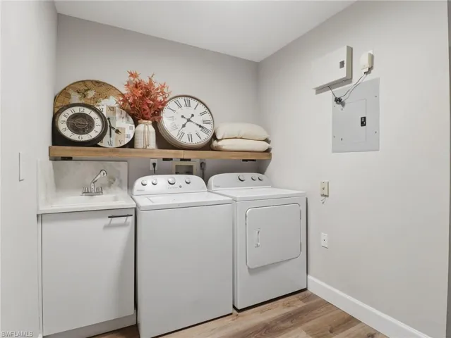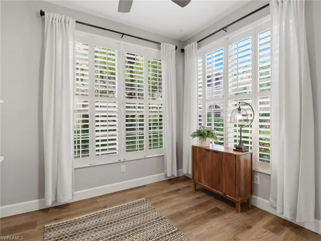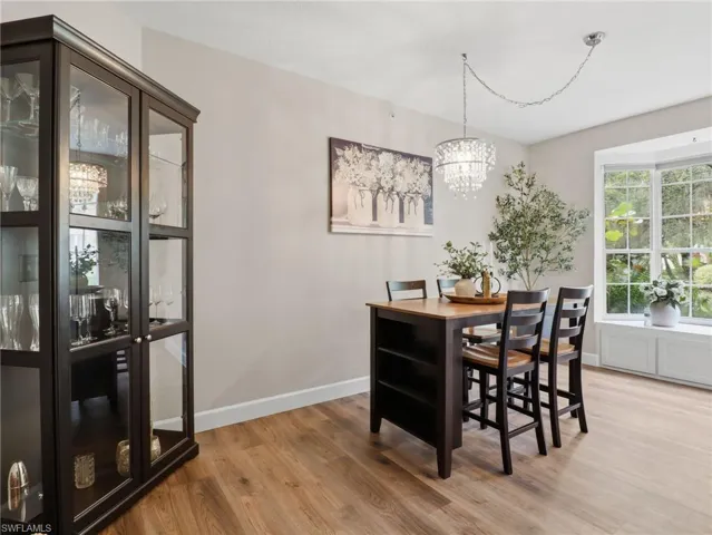 Perfectly positioned within the centrally located, gated community of Vineyards in Naples, this beautifully remodeled first-floor residence offers an effortless blend of comfort, style, and convenience. Encompassing 2 bedrooms plus a versatile den and 2 full baths, the home lives with both sophistication and ease. Inside, wide-plank luxury vinyl flooring flows seamlessly throughout, setting a warm and contemporary tone. The reimagined kitchen is both functional and refined, showcasing quartz countertops, updated cabinetry, and newer appliances—thoughtfully designed for everyday living and casual entertaining. The bathrooms echo this elevated aesthetic, each appointed with new vanities, quartz surfaces, custom mirrors, and modern lighting. A flexible den, enhanced by double pocket doors, provides the ideal space for a private office, media room, or additional guest accommodations. The living area opens to a spacious screened lanai, where tranquil garden views create a peaceful backdrop—perfect for morning coffee or evening relaxation. Just steps away, the community pool offers added convenience without compromising privacy. Completing the offering is a 1-car garage with an additional driveway space, ensuring practical ease for residents and guests alike. Quiet, inviting, and thoughtfully updated, this residence captures the essence of comfortable Southwest Florida living within one of Naples’ most desirable communities just minutes from gorgeous beaches and vibrant culture.