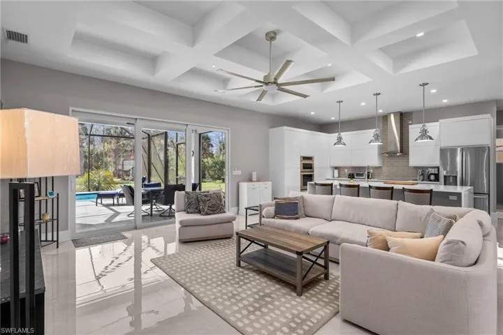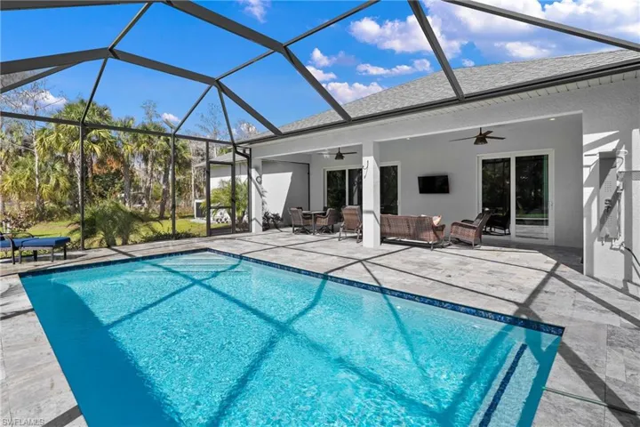 Presenting the Next Level of Luxury in Golden Gate Estates Newer Construction! This Ready to Move In Pool Home offers a Spacious 2,037 SF of Living Space and is situated on a Peaceful 2.73 Acre Lot with a heated pool. The stunning kitchen boasts modern wood cabinets, a sprawling quartz-covered island, and high-quality stainless steel appliances. The Open and Split Floor-plan showcases Gorgeous Tray Ceilings, 8′ doors, 8″ baseboards, and 48″ x 24″ porcelain tile floors. Indulge in the master suite with 2 walk-in closets and an elegant bathroom adorned luxurious finishes. The guest bedrooms offer ample space and their own walk-in closets. LED mirrors grace the full bathrooms, while the laundry room provides convenience and access to the garage featuring Impact Windows and Epoxy Floors. Enjoy Florida living outdoors with a New pool, screened enclosure, and Travertine deck — ideal for relaxing or entertaining. Home is equipped with hurricane-proof windows, sliding doors, and entry door, safety and security is of no concern. The reverse osmosis system provides crystal-clear, odor-free water. Enjoy the perfect location, just 5 mins from supermarkets, pharmacies, gas stations, restaurants, and only 20 mins from Naples’ most beautiful beaches. Property is sold Furnished and comes with a One Year Home Warranty. Luxury awaits you!