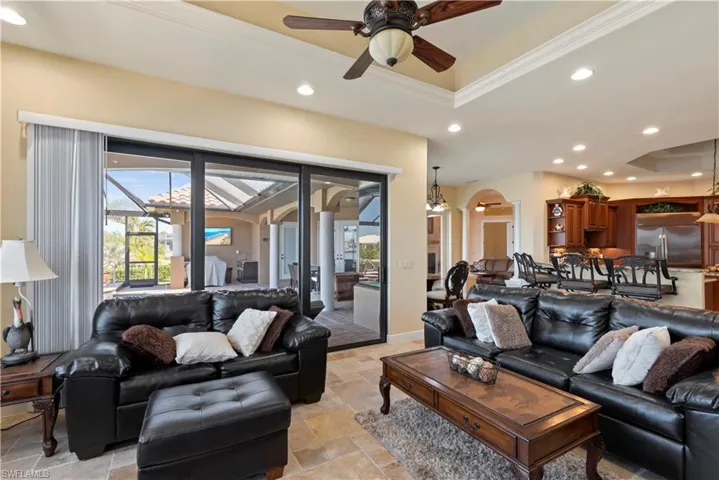 seamlessly extending from the living and dining rooms making it the perfect space for