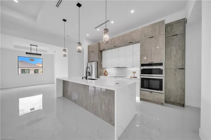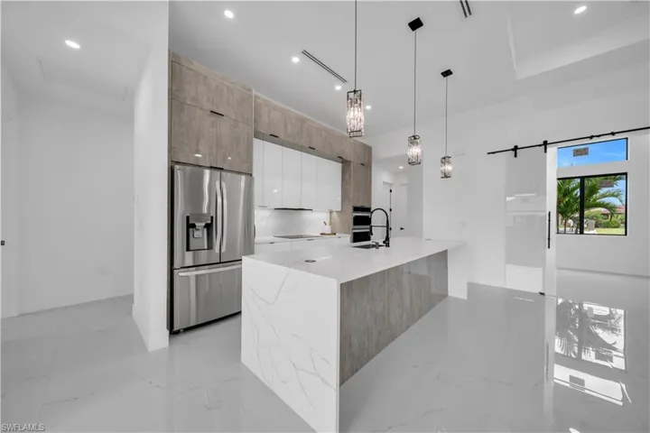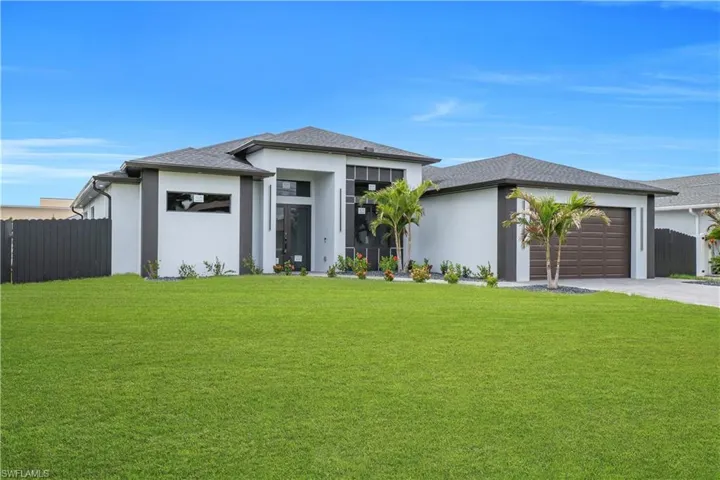 Welcome to 2218 SW 15th Ave, Cape Coral, FL 33991. This new construction home offers 4 bedrooms and 3 full bathrooms with a modern, open-concept design. The kitchen features quartz countertops, LG stainless steel appliances, built-in oven and microwave, and contemporary cabinetry. Tile flooring runs throughout the entire home, and the living room showcases a beautiful custom TV wall with an electric fireplace, creating a stylish focal point. Interior highlights include high ceilings, impact-resistant windows and doors, and a dedicated laundry room with washer, dryer, and utility sink. The garage is finished with epoxy flooring, LED lighting, and a side access door. Exterior features include a paver driveway and a spacious lanai with a summer kitchen, perfect for entertaining. Enjoy the beautiful saltwater pool overlooking the canal, plus an outdoor shower and a fully fenced yard for added privacy. Property is on CITY WATER with ALL ASSESSMENTS PAID IN FULL and is located in a NON-FLOOD ZONE. Conveniently located in a desirable area of Cape Coral close to shopping, dining, and schools. Don’t miss this opportunity. Schedule your showing today.