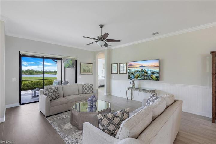 BEST PRICED SINGLE FAMILY IN ESPLANADE GOLF CLUB ! Nestled within the exclusive confines of the Esplanade Golf & CC, discover the epitome of resort style living year round from this “Lazio” model at 8814 Vaccaro Ct situated on a .40 acre lot in a cul-de-sac with fabulous lake views to each side, FULL GOLF MEMBERSHIP & OFFERED FURNISHED! Move in ready, this home offers a modern open floor plan including:3 BD+Den, 3BA, 2-car tandem garage, New A/C, new custom built-ins in den, impact windows in front, hurricane shades & shutters for rest of home, plantation shutters & more! Gourmet kitchen is perfect for entertaining: large granite island, freshly painted cabinetry, pantry, natural gas stove. Each guest bedroom has own en-suite. Master suite offers large built in walk-closet, walk-in shower & dual sinks. Step out onto your screened lanai w/ built-in outdoor kitchen, nice seating area, hurricane screens & still room to build dream pool! Esplanade amenities are at your fingertips: state of the art clubhouse, culinary center, restaurant,18-hole golf course, resort pool/spa, cabanas, walking trails, 6 tennis courts, dog park, fitness center, pickle-ball, tiki bar, wellness center & more!