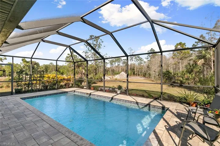 Escape to your own private retreat, where over 8.5 acres of pristine land offer a peaceful oasis surrounded by nature. Tucked away from the hustle and bustle, this exceptional property provides stunning preserve views, ample space for outdoor living and the ultimate in privacy. Built in 2018, this beautifully designed home blends modern comfort with timeless elegance. Inside, you’ll find thoughtfully curated upgrades, including sleek quartz countertops, top-of-the-line appliances and stylish finishes throughout. The open-concept layout creates a seamless flow, ideal for relaxed living and entertaining. Step outside to your personal paradise, where a sparkling swimming pool invites you to unwind and soak in the tranquility of your surroundings. Whether you’re enjoying morning coffee on the lanai, exploring the expansive property or simply taking in the breathtaking scenery, this home offers a special lifestyle. A rare find in a desirable location, this private estate is ideal for those seeking space, serenity and modern luxury, all within easy reach of Southwest Florida’s finest amenities. Don’t miss this unique opportunity! Note that this listings includes two parcels that will be combined. Two acres are single family residential whille you enjoy being surrounded the additional protected wetlands, preserve and cypress head.