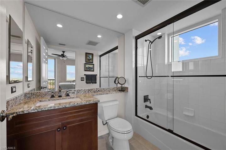 Welcome to this luxurious and impeccable private residence in Hammock Bay. An exceptional open floor plan with 3 bedrooms, 3 full/1 half baths, this remodeled home has it all. Offering a delightful living experience featuring engineered wood flooring with new baseboards, and crown molding in all coffered ceiling areas, the foyer, kitchen and primary bathroom. Granite kitchen counters with full granite backsplash, Bosch appliances including counter depth refrigerator, dishwasher and microwave. New Elkway Lustertone stainless steel sink and Hansgrohe faucet. Newly renovated bathrooms with granite counters and new sinks, shower doors, faucets and hardware. These hand-selected exclusive finishes are exceptional. With 180-degree panoramic views from Marco Island to the distant lights of Naples, this is the lifestyle you have been looking for. Amenities include a theater, fitness center, social rooms and poolside cabanas along with membership golf and tennis. Casual dining at the grill also available. Convenient location to Marco Island beaches, restaurants, shopping and 5th Avenue downtown Naples just minutes away. The best-kept secret in Naples. Hammock Bay.