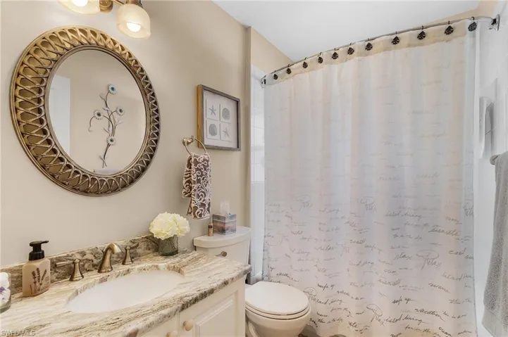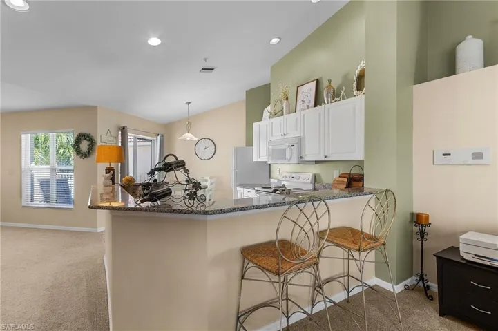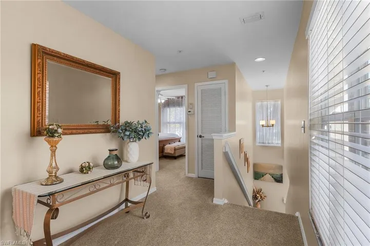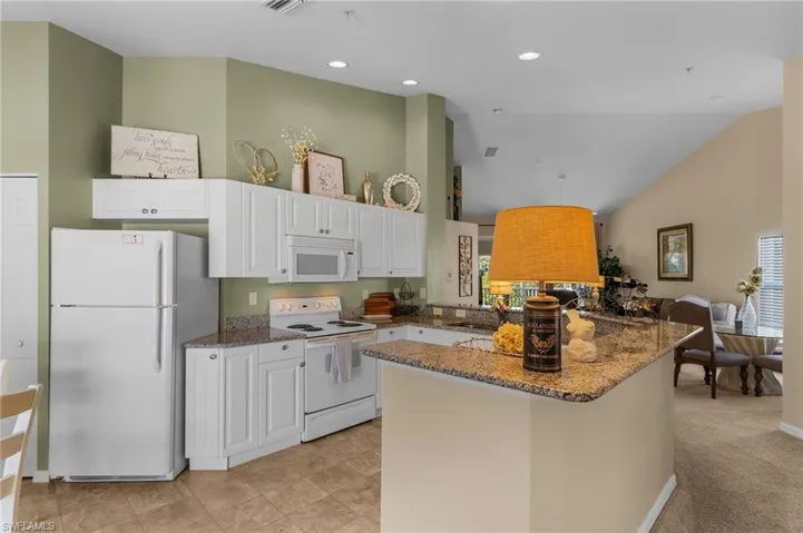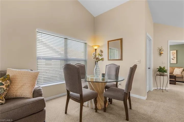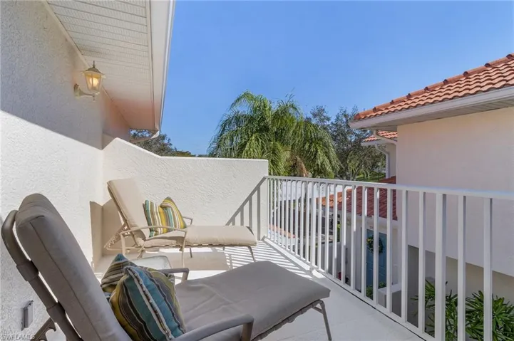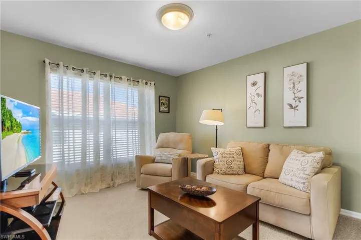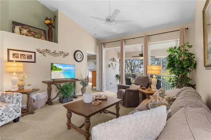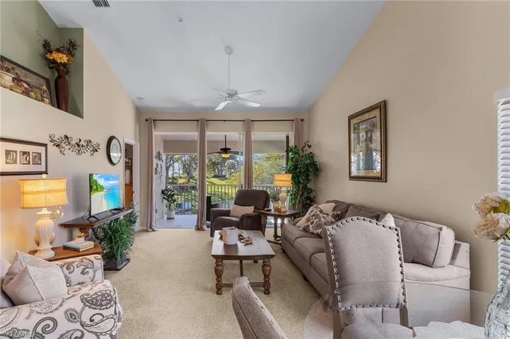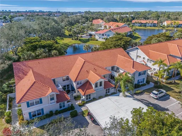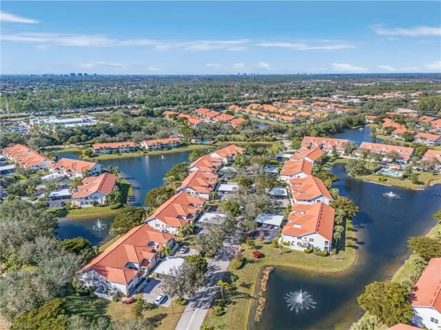 This clean and inviting 2-bedroom + den, 2-bathroom corner unit offers extra space and more natural light with its additional windows, making it feel open and airy. Enjoy morning coffee on the eastern exposure balcony & cocktails to wind down the day on your western exposure lanai with a lake view and sounds of the fountain. This meticulously maintained turnkey property comes fully furnished, with a long list of impressive upgrades and modern conveniences, including in-unit laundry. Very reasonable HOA fees also cover water, cable, and internet. This expansive 1,659 square foot floor plan features a den, vaulted ceilings, and a spacious primary bedroom with an elegant en-suite bathroom, complete with dual sinks, an oversized shower, and a walk-in closet with custom shelving. Residents of Carlton Lakes enjoy access to a wealth of luxurious amenities, including multiple community pools, a clubhouse, BBQ and picnic area, hot tub, exercise room, pickleball/tennis courts, basketball, and bocce courts. Plus, with private gate access to The Strand shopping center, stunning Gulf beaches, shopping, and dining are all just minutes away. Experience the ultimate in comfort, space, and location. Make this incredible condo your dream home today!