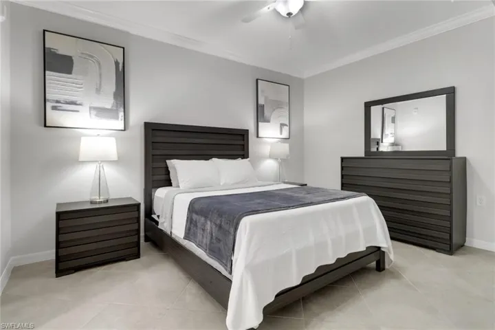 Step into this beautifully upgraded 2-bedroom, 2-bathroom first-floor condo, offered turnkey furnished with sleek, modern furnishings and a true designer touch. This like-new residence features tile flooring throughout, crown molding, chair rail detailing, and an upgraded backsplash, a perfect blend of style and comfort.