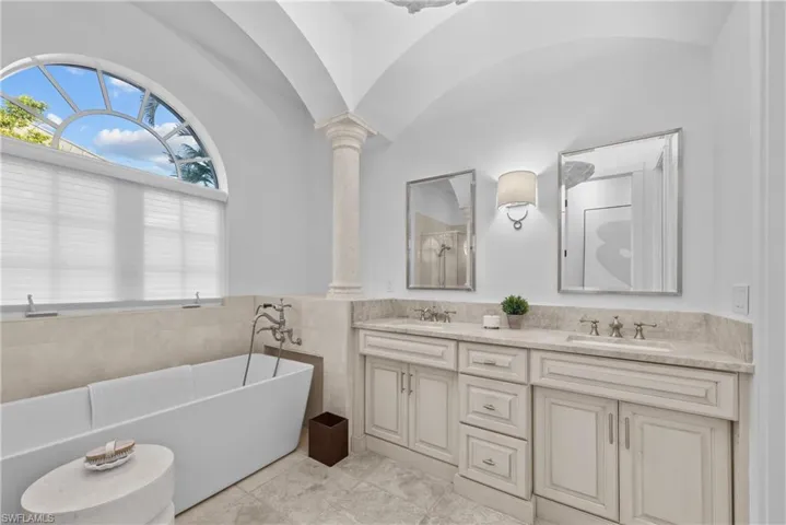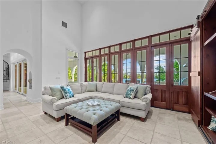 Experience premium, sustainable living in this Luxury Mediterranean-Style home, a Bud Lawrence masterpiece on a private 1.23 acres. Exuding European charm, this residence showcases resilience and craftsmanship, having withstood hurricanes Milton and Helene without a drop of water entering. Its elevated, secure design features Colombian handmade clay tiles, grand cypress doors, and nearly 4,000sq ft of marble floors, ornate moldings, and soaring 16′ ceilings, including a barrel ceiling in the owner’s suite. Captivating lake views enhance this turn-key home, offering 3 spacious bedrooms, 3 baths, a library, office, and 2 lofts. Three balconies and a large lanai with an outdoor kitchen overlook the pool-spa and lake, promising enchanting evenings and relaxation. This luxury residence is also energy-smart, with a 7kW Enphase solar system, high-efficiency water heaters, and 18-SEER AC units, cutting electric costs by 50%. The 3-car garage includes an EV charging station, and its location near central Sanibel and bayside park park completes this blend of tranquility and eco-conscious living.