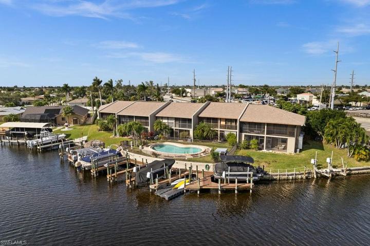Welcome to Your Gulf Access Paradise! CONFIRMED TRANSFERABLE LEASED BOAT SLIP TO NEW BUYER! Discover amazing waterfront living in this recently updated and fully furnished 2-story, 2-bedroom, 3-bath condo boasting direct Gulf access. A boater’s dream, this residence promises an unparalleled lifestyle, providing easy access to the Caloosahatchee River and the Gulf of Mexico. As you step inside, you’ll be greeted by a thoughtfully designed open-concept kitchen and living room, perfect for entertaining family and friends. The allure of this residence is elevated by a charming spiral staircase leading to the upstairs master bedroom balcony—a prime spot to witness breathtaking sunrises over the water. Embrace the luxury of having no bridges between you and your nautical adventures, ensuring seamless journeys to beaches, renowned restaurants, and prime fishing spots. For those seeking tranquility, the small condo community offers a private dock with a Tiki Hut, providing a serene setting to watch dolphins gracefully swim by. Indulge in the refreshing waters of the beautiful pool, overlooking the 200′ San Carlos canal. Whether you’re looking for a year-round residence or a winter retreat, the array of amenities and the idyllic surroundings make this condo an ideal choice. Don’t miss the opportunity to make this waterfront haven your own. Schedule your private showing today! (Agents, please refer to private remarks for additional information.)