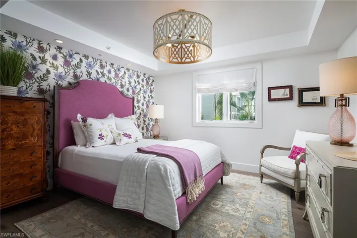 Showings to begin Saturday, April 25th. A rare opportunity at Esmeralda on Eighth, this residence is connected directly to the private pool terrace via an interior staircase, creating an indoor-outdoor living experience that feels more like a single-family home. Go outside for a morning swim or relax poolside just moments from your door, all within an intimate boutique building of only six residences. The exquisitely decorated interiors feature rich grass cloth wall coverings for added texture, and a gold-leaf reflective ceiling that introduces depth and warmth to the living space. A Thermador appliance package anchors the kitchen, while marble-clad baths deliver a refined, spa-like feel. The elevator opens directly to the residence for added ease and privacy. Additional highlights include a private two-car garage and accessibility to everything Old Naples has to offer.