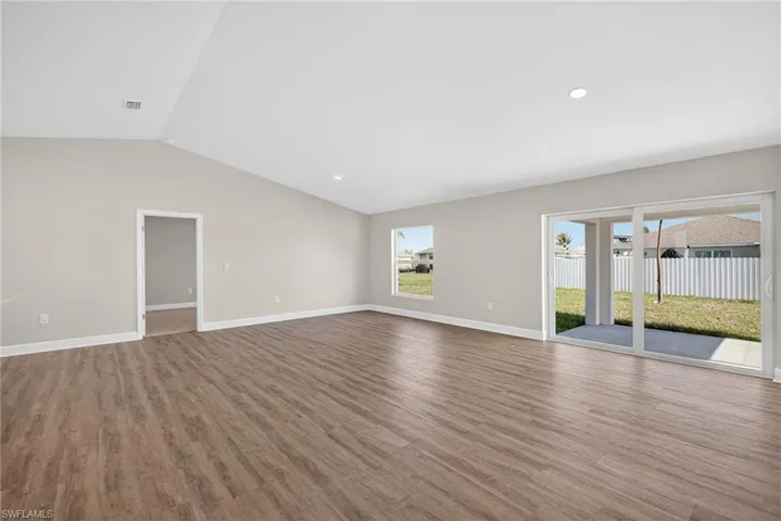 MOVE IN READY NOW! 2 PRIMARY SUITES! NEW CONSTRUCTION! CORNER LOT! This is the highly sought-after Sunset Harbor Plan! This exceptional residence offers modern coastal living with a thoughtfully designed layout, featuring four spacious bedrooms and three full bathrooms, including dual primary suites—perfect for multigenerational living or hosting guests in comfort. Set on a centrally located corner lot close to Chiquita that leads to all Cape Coral amenities, this home showcases an open-concept design filled with natural light and stylish finishes throughout. The chef-inspired kitchen is the heart of the home, complete with stainless steel appliances, all-wood shaker cabinetry with abundant storage, sleek quartz countertops, and a large island with breakfast bar seating. The expansive great room flows effortlessly into the dining area, creating an inviting space ideal for both everyday living and entertaining. Outside, the spacious corner lot offers endless possibilities for outdoor living, a future pool, or custom enhancements to create your own private retreat. NO FLOOD ZONE + IMPACT WINDOWS = LOW INSURANCE and peace of mind. Built with quality craftsmanship and designed for today’s lifestyle, this home is a rare opportunity at this pricepoint. One or more photo(s) was virtually staged. This is the Sunset Harbor Plan.
