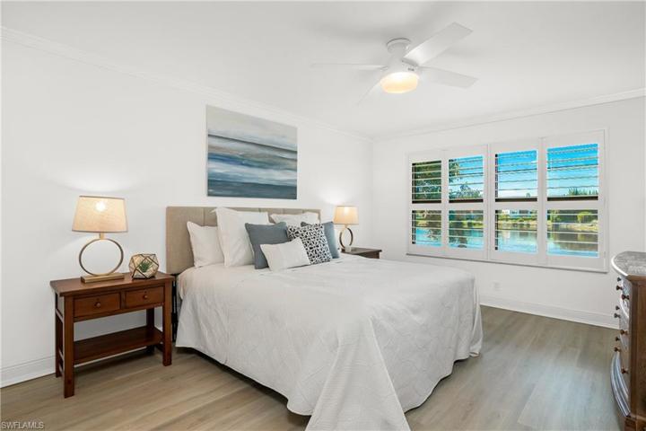 Ideal Moorings location with serene water views and tropical breezes. This bright and light corner unit has been completely remodeled from floor to ceiling. You will love the new expanded open kitchen featuring an upgraded quartz countertop, new flooring in living area plus the bathrooms and lanai, updated bathrooms, new recessed lighting, plantation shutters, new French doors, Kitchen-Aid appliances, hurricane glass doors/windows, and new light fixtures & fans. This outstanding floor plan encompassing approximately 1625 sq. ft. make this Moorings condo one to see! Features extra storage, new roof, new exterior painting, and new lighting.l. This property is nestled in the heart of Naples, minutes from shopping, fine dining, and the private Moorings beach club that provide members with beach access, cabana with bathrooms & grills, and ample parking. Somerset at Moorings is located very close to 5th Avenue and the white sand beaches giving you the best of what Naples has to offer. Vacant and easy to show.
