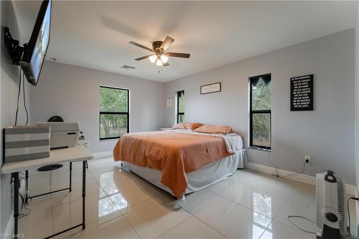 ROOM TO STRETCH YOUR LEGS! Built in 2021, this 1,439 square foot under air beautifully upgraded 3 Bedroom, 2 Bath home sits on a 1.25-acre lot on cul-de-sac on dead end street with a wooden fence/gate in front of home, but entire property is fenced and cross-fenced with two gates. Features include open concept floor plan, cathedral ceilings in living/dining rooms, 24×24″ polished porcelain tile flooring throughout, granite countertops in bathrooms and kitchen, center island with sink, dishwasher, & disposal, stainless steel appliance package, espresso-stained cabinets with brushed nickel pulls, alarm system with security cameras and an epoxy finish on garage floor. The master suite offers a large walk-in closet, his & her sinks, and tiled shower. Enjoy peace and quiet as you relax on your screened lanai! Catch snook, catfish and bass in the deep, freshwater canal just beside your new home. Located in Hendry County, but right on the edge of Lehigh, so you are within just a few minutes to major shopping centers and the historic downtown Fort Myers district. Interest rates have finally started to drop so buy now before they rise again!