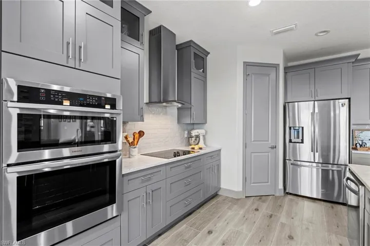 Relax and unwind in the expansive living area with a modern built-in electric fireplace for cozy evenings or ambiance. Oversized sliders that open to your heated pool and hot tub all while enjoying your private oasis for soaking up the Florida sunshine.