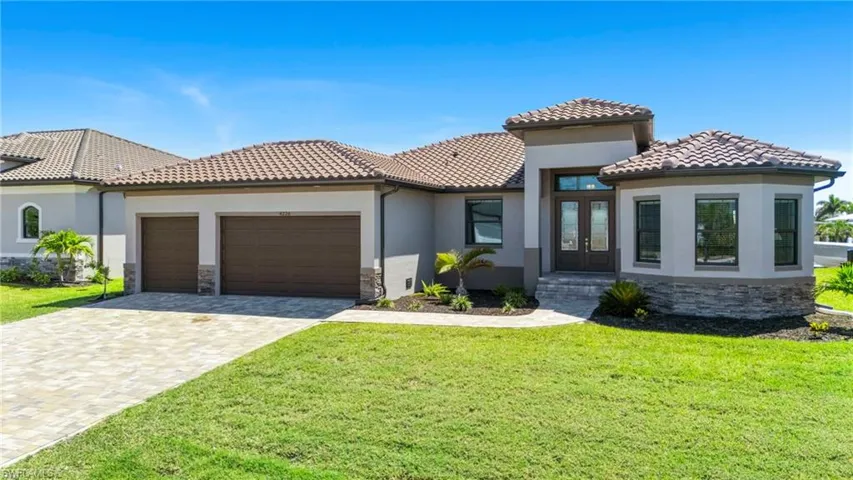 From the moment you arrive, you’ll be drawn in by the home’s stately presence—stone-accented exterior, paver driveway, hurricane-impact windows and doors paired with a durable tile roof offer both beauty and peace of mind. Step through grand double French doors into a light-filled open floor plan featuring 10′ ceilings, a blend of coffered and tray ceilings, 5” baseboards, and elegant crown molding. Every inch of this home has been thoughtfully curated for those who appreciate the finer things. Offering 3 spacious bedrooms, 3 full bathrooms, a large private den, spacious laundry room with custom folding station and abundant storage and an oversized 3-car garage. There’s ample room to host family and friends in comfort and style. The porcelain tile floors flow seamlessly throughout the entire home, complementing the thoughtfully designed split floor plan that includes a private ensuite guest room for ultimate privacy.