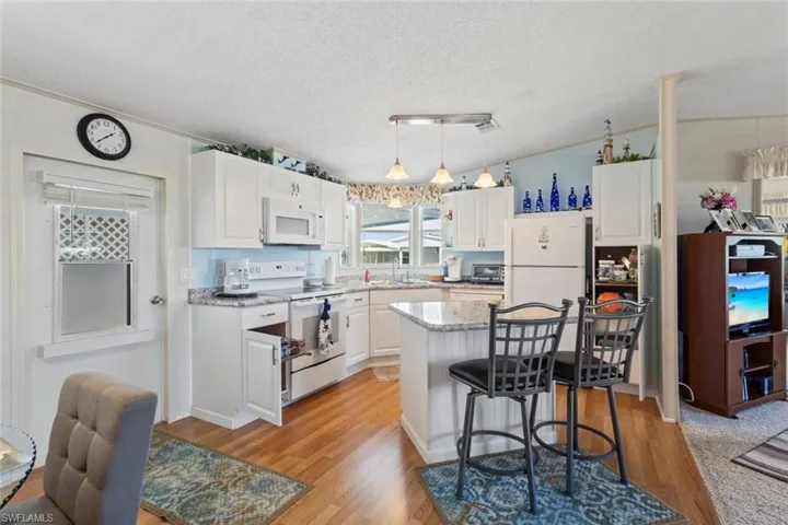 Impeccably clean and move-in ready, this charming 2-bedroom, 2-bath manufactured home offers a perfect blend of comfort, convenience, and Florida fun. Some of the latest updates include a brand new roof in ’23 and a remodeled kitchen in ’20. Included in the updated kitchen is a never-used dishwasher, recently installed new microwave, and cabinets equipped with pull-out shelving for easy access to cookware and pantry items. The kitchen features an island and an open layout that flows seamlessly into the living room—ideal for everyday living and entertaining. Enjoy a year-round sunroom, with room-filled windows that flood the space with natural light, creating a relaxing spot to unwind or sip a morning coffee. This home includes in-house laundry for added convenience, plus a storage shed perfect for tools, hobbies, or beach gear. A long, covered carport driveway provides ample parking and shade. If you’re a boating enthusiast, the community offers on-site boat/trailer storage. A community boat ramp gives you direct access to the Gulf for a beautiful day out on the water. Located in a vibrant 55+ community, residents enjoy an impressive array of amenities including a renovated heated pool, clubhouse, tennis, pickleball, bocce, horseshoes and a full calendar of classes and fun-filled social events. With low HOA fees and an unbeatable prime location, you’re close to beaches, top-rated restaurants, world-class shopping, Marco Island and the vibrant 5th Avenue district. This is an affordable, low-cost option for Naples living, offering the ultimate Southwest Florida lifestyle.