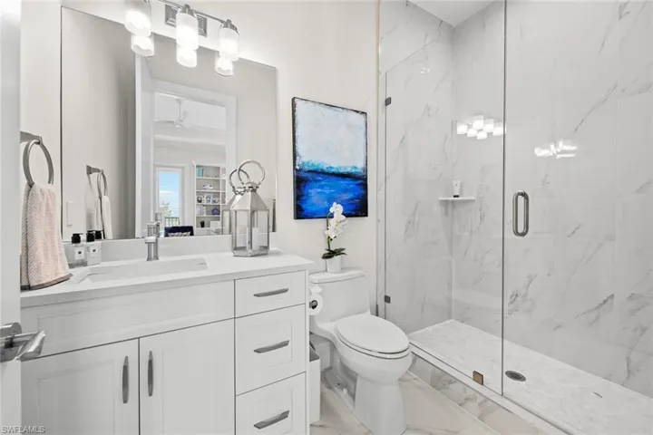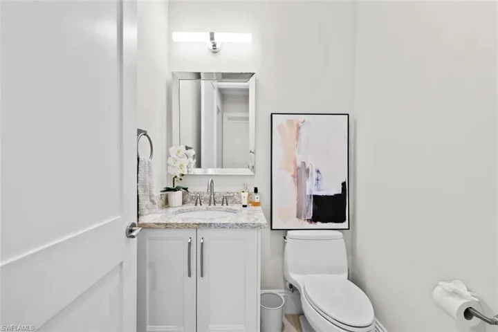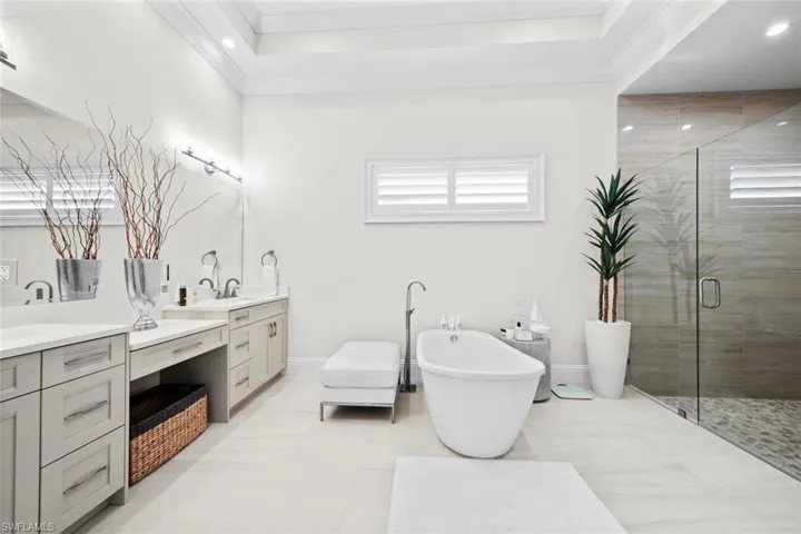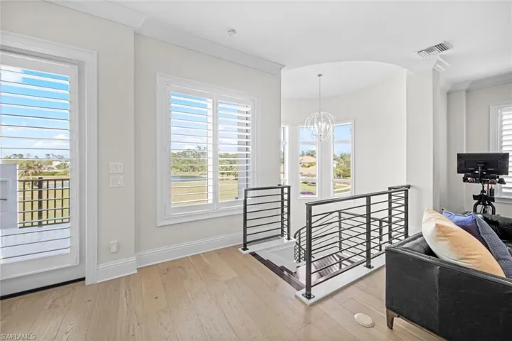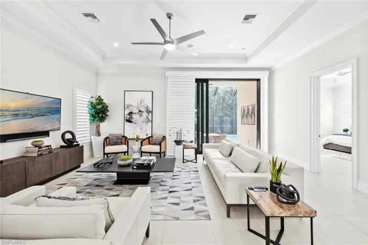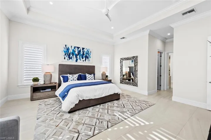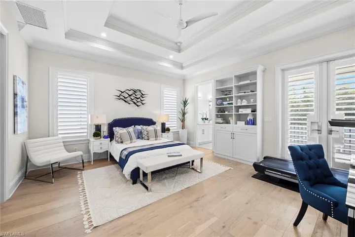 This exquisite property in Coco Lakes embodies the essence of luxury living, seamlessly merging contemporary design with functionality and sophistication. Constructed in 2020, the residence encompasses 4,610 square feet and showcases the expansive Azalea II floor plan, featuring five bedrooms and six bathrooms. Upon entry, you are welcomed by soaring ceilings and an elegant ambiance, accentuated by plantation shutters, crown molding, and a tasteful mixture of tile and hardwood flooring. The ample natural light, provided by numerous windows and recessed lighting, establishes a warm and airy atmosphere. A standout feature is the chef’s kitchen, designed with sleek white cabinetry, quartz countertops, and premium KitchenAid appliances, making it an entertainer’s dream. The cozy breakfast nook serves as a delightful spot for casual dining, while the formal dining area is perfectly suited for hosting larger gatherings. The owner’s suite presents a tranquil sanctuary, boasting direct access to the lanai, dual walk-in closets, and a lavish en-suite bathroom equipped with dual sink vanities, a walk-in shower, and a soaking tub. The living room, which effortlessly connects to the outdoor areas via glass sliders, is ideal for both relaxation and entertaining. The outdoor space is equally impressive, featuring a screened lanai with brick paver flooring, a covered dining area, and an outdoor kitchen complete with a gas grill and mini-fridge, creating a perfect environment for alfresco dining. The heated saltwater pool and spa, enveloped by a private garden view, enhance the outdoor living experience even further. On the upper level, a media loft with a wet bar provides an excellent space for entertainment. Each additional bedroom is carefully designed to ensure comfort and privacy, with easy access to well-appointed bathrooms. With low HOA fees and a prime location near downtown Naples, this extraordinary residence not only promises a luxurious lifestyle but also convenient access to shopping, dining, beaches, and parks. It represents a truly remarkable opportunity in one of Naples’ most sought-after locations!