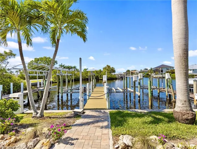 Step out onto the expansive south-facing deck and soak in panoramic canal vistas—an ideal backdrop for morning coffee or evening cocktails. Boaters will appreciate the private dock directly across from the residence equipped with two boat lifts, offering effortless access to restaurants, bars, open water to the barrier islands. The primary suite is a true sanctuary, with tranquil views of the pool and lush landscaping. A charming spiral staircase leads directly from the suite to the Lanai and there’s also a secluded kayak launch, your personal escape into nature. Follow the Gulf access creek out to the beautiful white sand beaches.