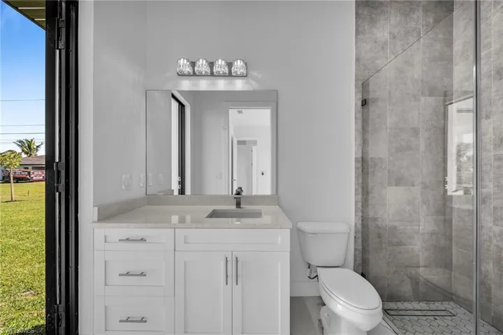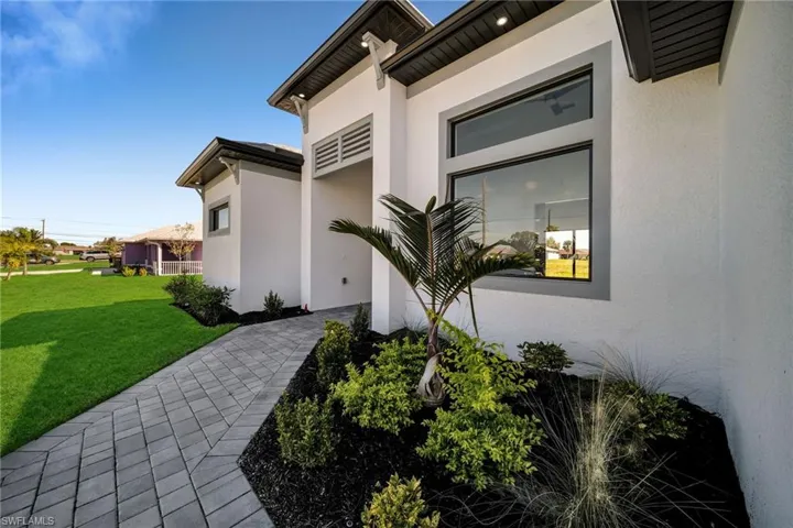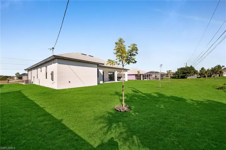 NEW CONSTRUCTION HOME!! Come take a look at this beautiful home located in a well desirable area of Cape Coral. High ceilings with grand entry double doors and 16” feet tall, tray ceilings, porcelain floors throughout the entire home and impact resistant windows and doors for your safety and peace of mind. Spacious kitchen with custom cabinets, quartz counter tops and Kitchen Aid appliances. 3 bedrooms, 3 full bathrooms and a den. Master bedrooms offer a huge walking closets for her and his. Spacious master bathroom with double sink and separate shower and tub. Outdoor kitchen on back porch and access to one of the bathrooms from the outside. Pavers on the driveway and on the back porch. Epoxy coated garage floor, outdoor kitchen and auto sprinkler irrigation. Room for a pool and more!. Builder has the same floor plan home in other locations in our beautiful Cape Coral. Home is expected to be complete within two weeks. Don’t wait for later, come take a look to this beautiful home! AGENTS SEE REMARKS